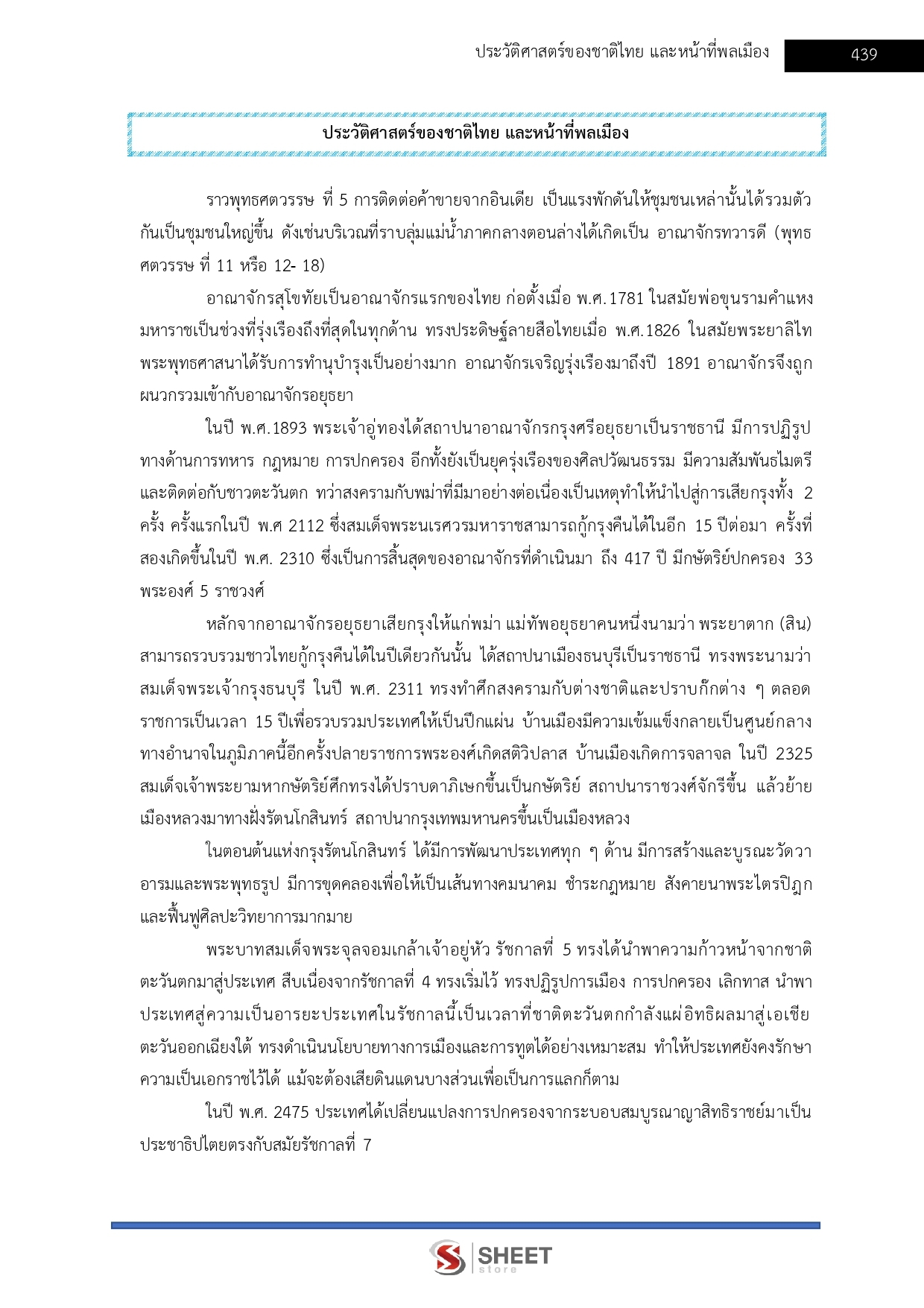 - ประวัติศาสตร์ของชาติไทย และหน้าที่พลเมือง