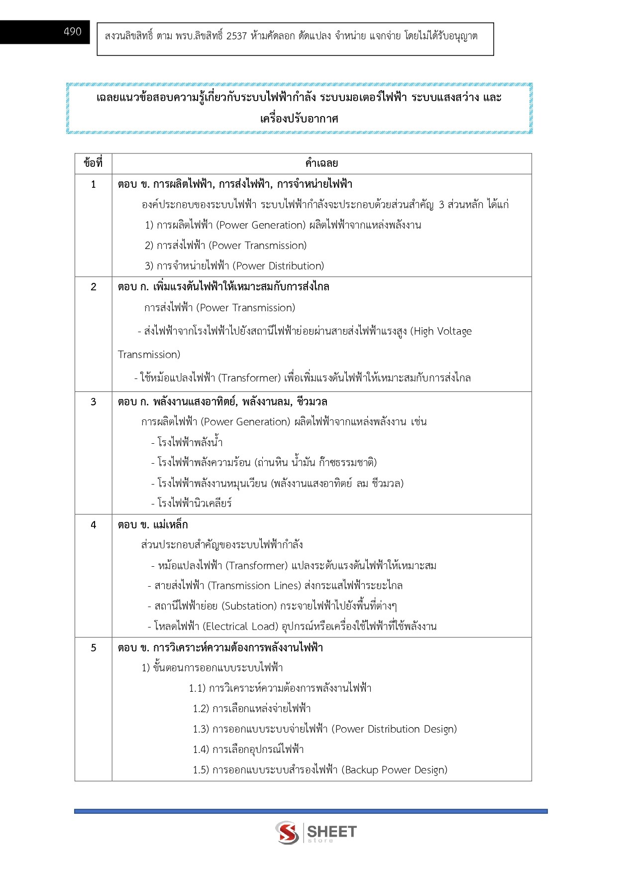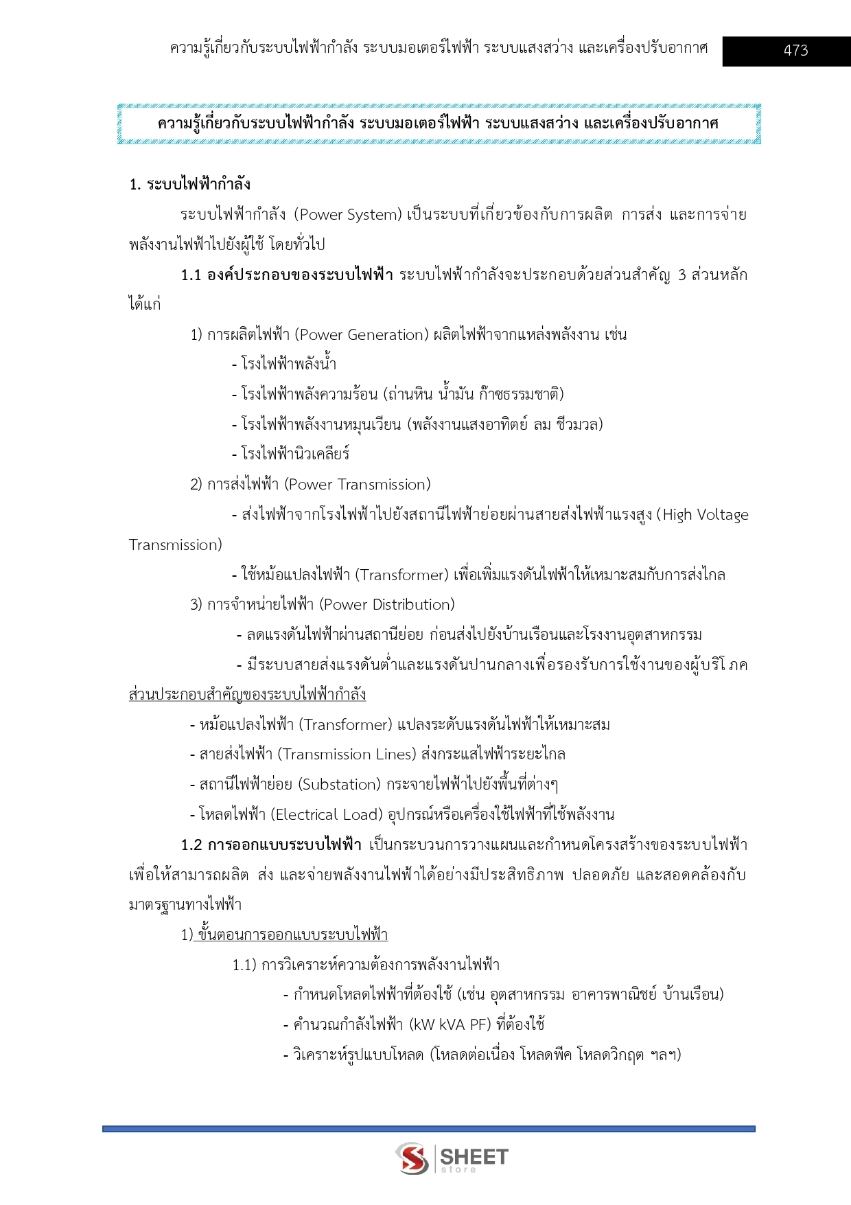 -ความรู้เกี่ยวกับระบบไฟฟ้ากำลัง ระบบมอเตอร์ไฟฟ้า ระบบแสงสว่าง และเครื่องปรับอากาศ