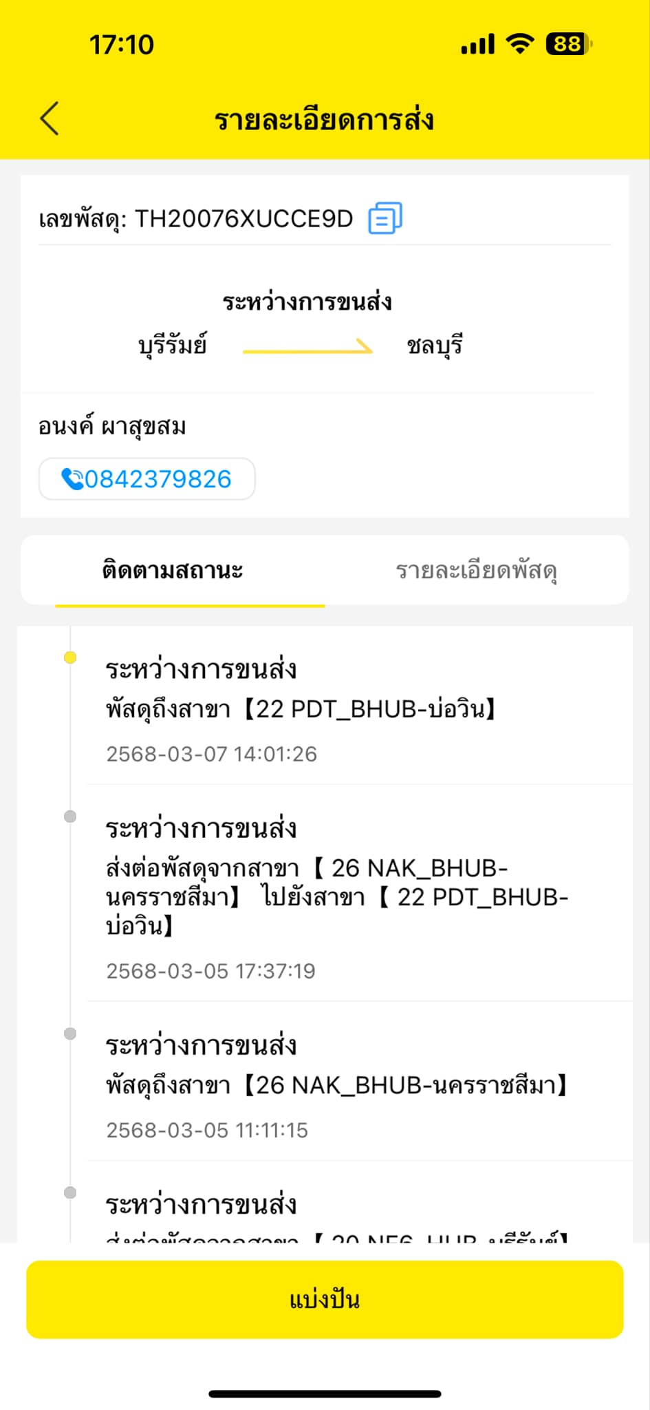 แม่ที่บ้านส่งส้มปลามาให้จากต่างจังหวั มาถึงที่ศูนย์แฟรซตั้งแต่วันที่ 7 มีนาคม แล้วไม่มีคนมาส่งจนของเน่าคากล่องเสียเงินค่าของไปเกือบ3,000 แย่มาก นี้เข้าวันที่ 11แล้วยังเงียบกริบ