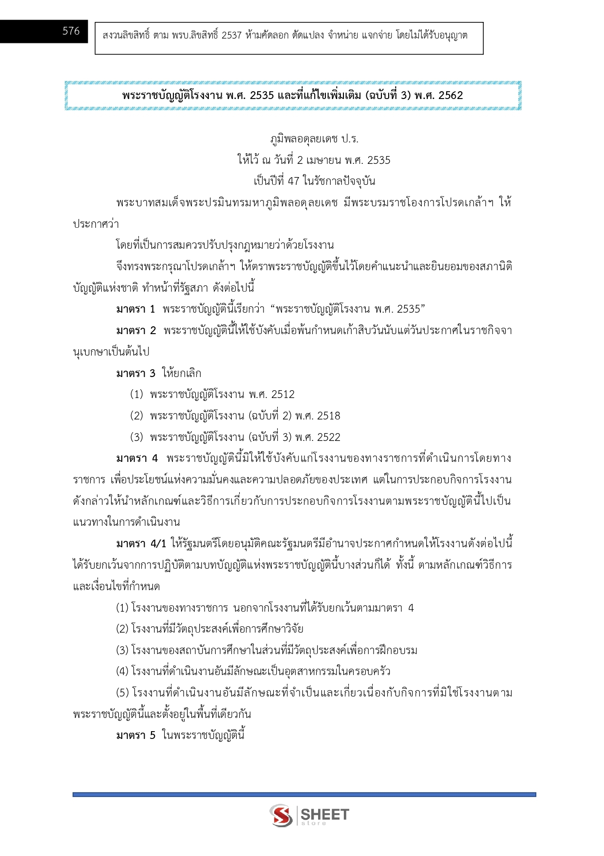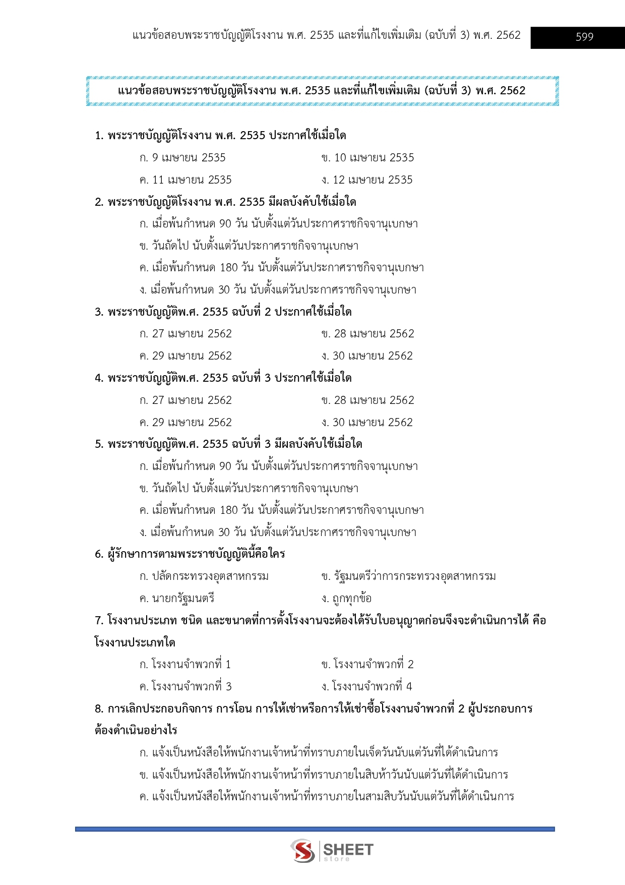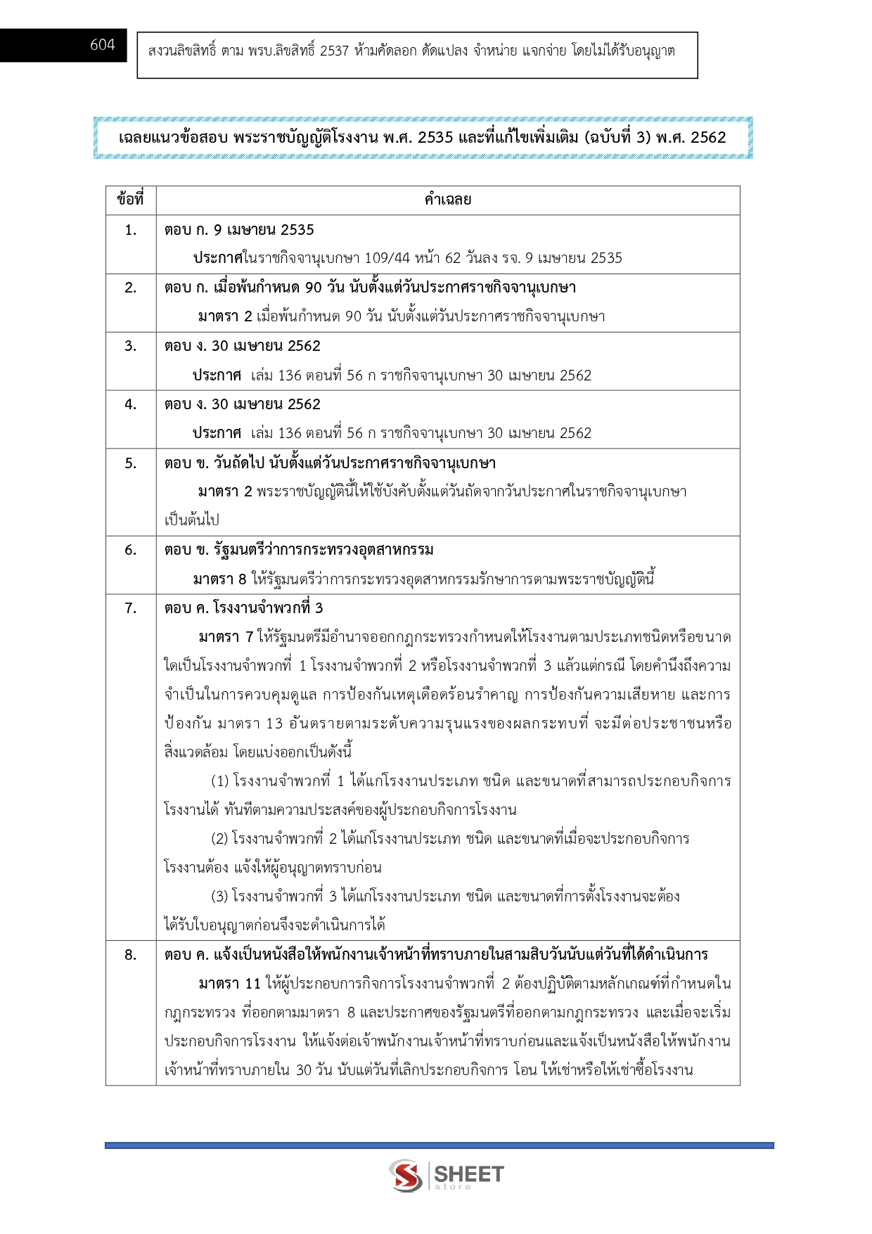 - แนวข้อสอบ พระราชบัญญัติโรงาน พ.ศ. 2535 และที่แก้ไขเพิ่มถึง ฉบับที่ 3 พ.ศ.2562