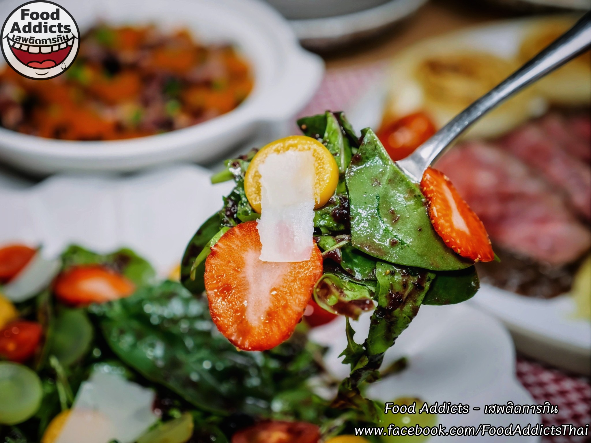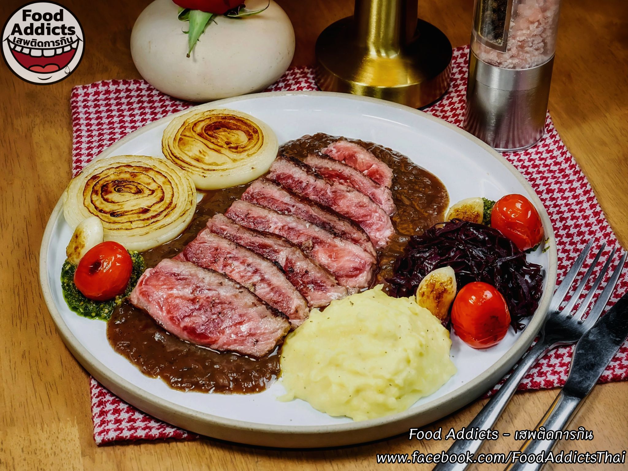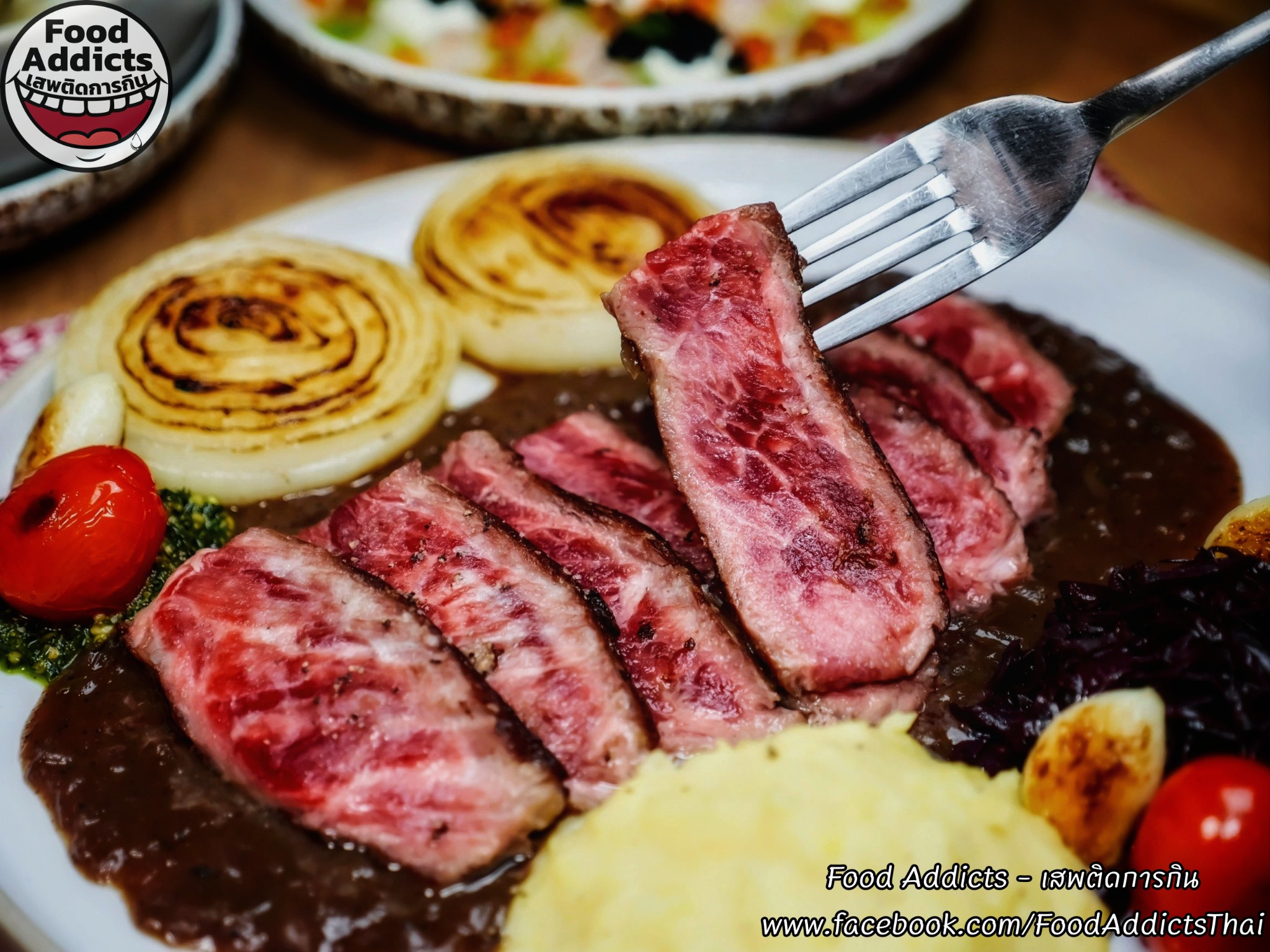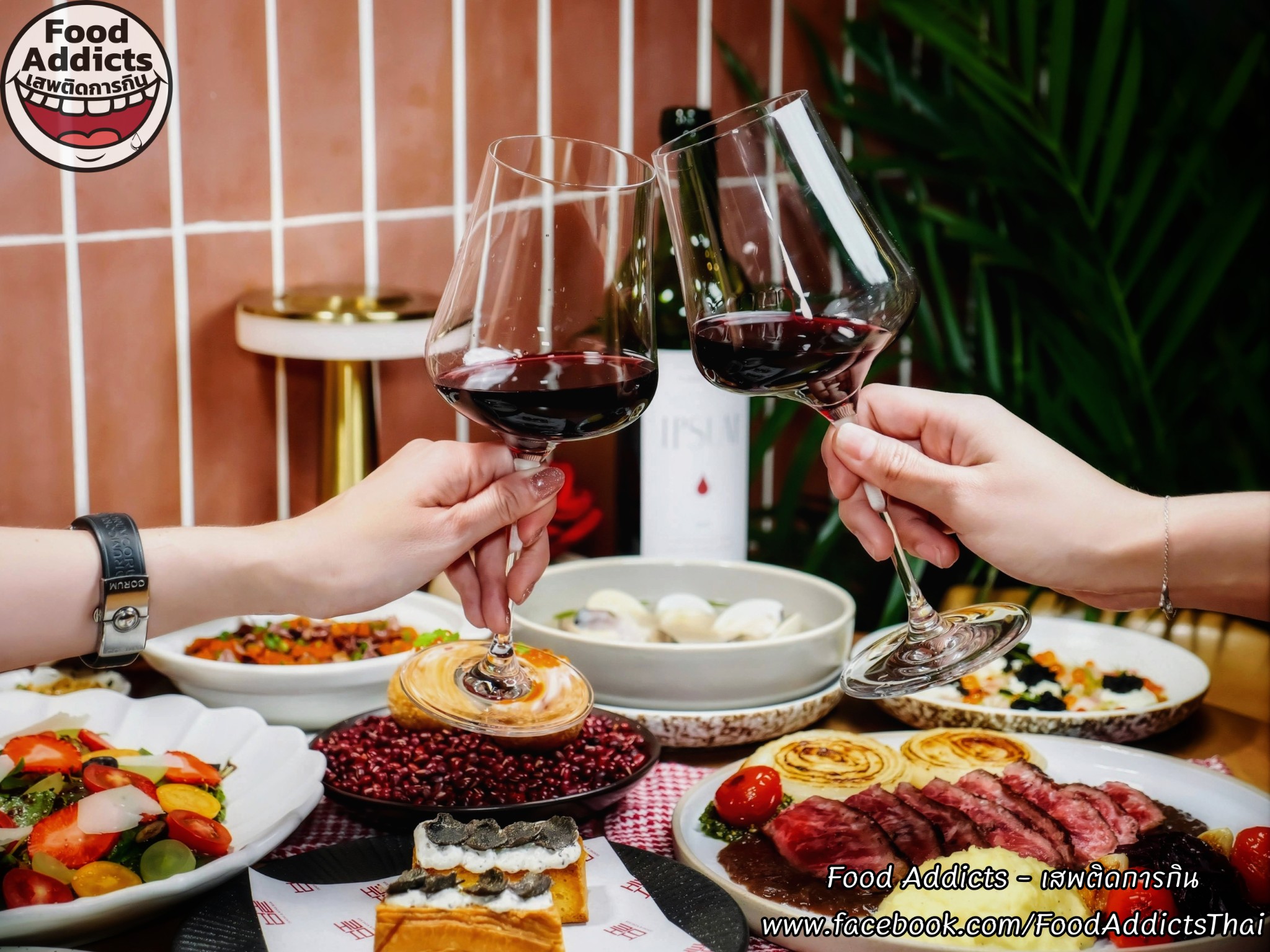 จานหลักอย่างสุดท้ายปริมาณเยอะสามารถตักแบ่งรับประทานได้ถึงสองท่านนั่นก็คือ "Australian Wagyu" ราคา 1,100 บาท เนื้อวัวลูกครึ่งพ่อพันธุ์ญี่ปุ่นวากิวแท้ผสมพื้นเมืองออสเตรเลียแองกัสขนดำรักษาจุดเด่นกำจัดข้อด้อยออกเหลือแต่ความนุ่มกลิ่นหอมแทรกไขมันลายหินอ่อนสวยงามบริเวณสันนอกใกล้เอวโรยเกลือและพริกไทยดำย่างระดับ Rare ผิวด้านนอกเกรียมกรอบตรงกลางยังแดงสดใสหากต้องการสุกกว่านี้รบกวนแจ้งน้องพนักงานช่วยปรับเปลี่ยนตามใจคุณ หั่นเสิร์ฟชิ้นหนาวางบนซอสฟิกเกรวี่มะเดื่อฝรั่งเค็มหวานละมุนกลมกล่อมเครื่องเคียงจัดเต็มทั้งมันฝรั่งบดจนเนียนเนยเด่นชัด,ผักรวม (มะเขือเทศ,กระเทียม,หอมใหญ่) ปิ้งไฟราดเพสโต,กะหล่ำปลีดองไวน์แดงเปรี้ยวช่วยตัดเลี่ยน / "Pete's Pure Cabernet Sauvignon" ราคาแก้วละ 280 บาท ไวน์องุ่นแดงหมักสัญชาติออสเตรเลียผลิตขึ้นเมื่อปีคริสต์ศักราช 2021 รสชาติแนวผลไม้หวานนำดื่มง่ายไหลลื่นคล่องคอแต่ดีกรีแอลกอฮอล์รุนแรงเยอะถึง 13.5% ถ้าแชตล่วงหน้าสำรองแบบคอร์สก็รับเลยทันที 1 ขวดแต่ต้องดื่มให้หมดภายในร้านเท่านั้นไม่สามารถนำกลับบ้านทุกกรณี นอกจากนี้เขายังมีเมนูสไตล์ A La Carte อื่นให้ลูกค้าลองอีกเพียบราคาเริ่มต้นที่ 90 บาทเปิดมือถือสแกน QR Code หรือกดอ่านเล่มฉบับออนไลน์ตรงลิงก์นี้ >