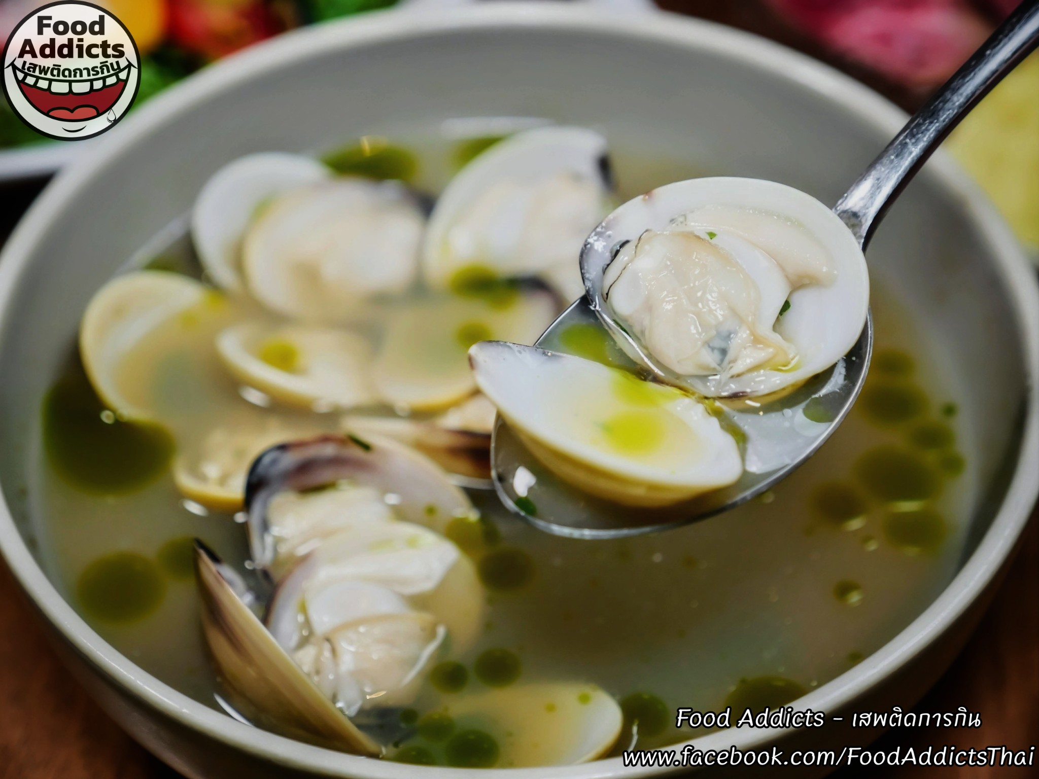 เมนูต่อมาส่งกลิ่นหอมเย้ายวนยั่วน้ำลายกระจายเต็มร้าน "Hide Dine & Wine" (BTS สะพานควาย) เมื่อถูกวางเสิร์ฟบนโต๊ะของเราทันทีนั่นก็คือ "Asari Soup" ราคา 220 บาท หรือมีอีกชื่อเรียกว่าซุปหอยตลับหน้าตาแสนธรรมดาแต่ส่วนตัวประทับใจมากที่สุดในมื้อนี้โดยคุณเชฟเลือกใช้เฉพาะเกรดสดใหม่ไซส์ใหญ่คัดพิเศษบรรจงแช่ล้างขัดเปลือกรอหอยคายทรายทะเลออกสะอาดหมดจดดี ต้มใส่เหล้าสาเกสุราแบรนด์ท้องถิ่นนำเข้าจากดินแดนอาทิตย์อุทัยแอลกอฮอล์ระเหยหมดเกลี้ยงเหลือรสหวานละมุนล้ำลึกปรุงเกลือสมุทรเค็มกลมกล่อมหยดน้ำมันสมุนไพรสกัดฉบับอิตาลีสีเขียวสวยงามตอนกำลังร้อนจนลูกค้าโต๊ะอื่นๆต้องหันมองทิศทางเดียวกัน / "Hotaru Ika Donabe" ราคา 420 บาท ข้าวสายพันธุ์โคชิฮิคาริแห่งจังหวัดนีงาตะลักษณะเมล็ดอ้วนกลมสั้นสัมผัสเหนียวหนึบสู้ฟันจับคลุกเคล้าหมึกสีดำเลียนแบบ "อาร์โรซเนโกร" ฝั่งสเปนบรรจุลงหม้อดินสไตล์โดนาเบะขนาดเล็กปิดฝาสนิทตั้งไฟอ่อนหุงสุกนิ่ม ท็อปปิ้งโฮตารุอิกะหมึกหิ่งห้อยวัตถุดิบระดับภัตตาคารโอมากาเสะตัวแทนฤดูใบไม้ผลิตัวจิ๋วไข่อัดแน่นตุงเต็มท้องเพราะถูกจับบริเวณอ่าวโทยามะส่องแสงเปล่งประกายตอนกลางคืนเพื่อหาจับคู่ผสมพันธุ์ตกแต่งไข่ปลาบินสีส้มโรยต้นหอมตักรับประทานทันทีสลับราดน้ำจิ้มซีฟู้ดตำรับไทยแท้เปรี้ยวแซ่บกระเทียมเยอะอร่อยสะใจอีกสูตรครับผม