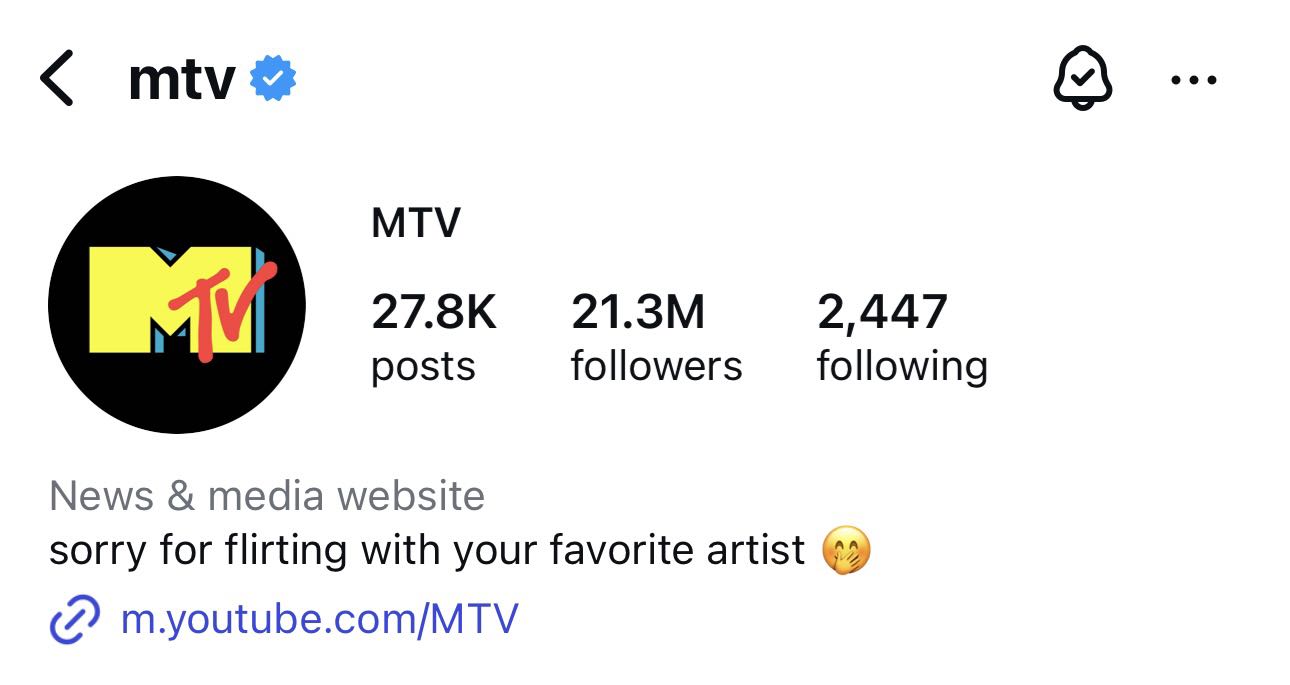 โดยตอนนี้ IG ของช่อง MTV มีผู้ติดตาม 21.3 ล้านคน
