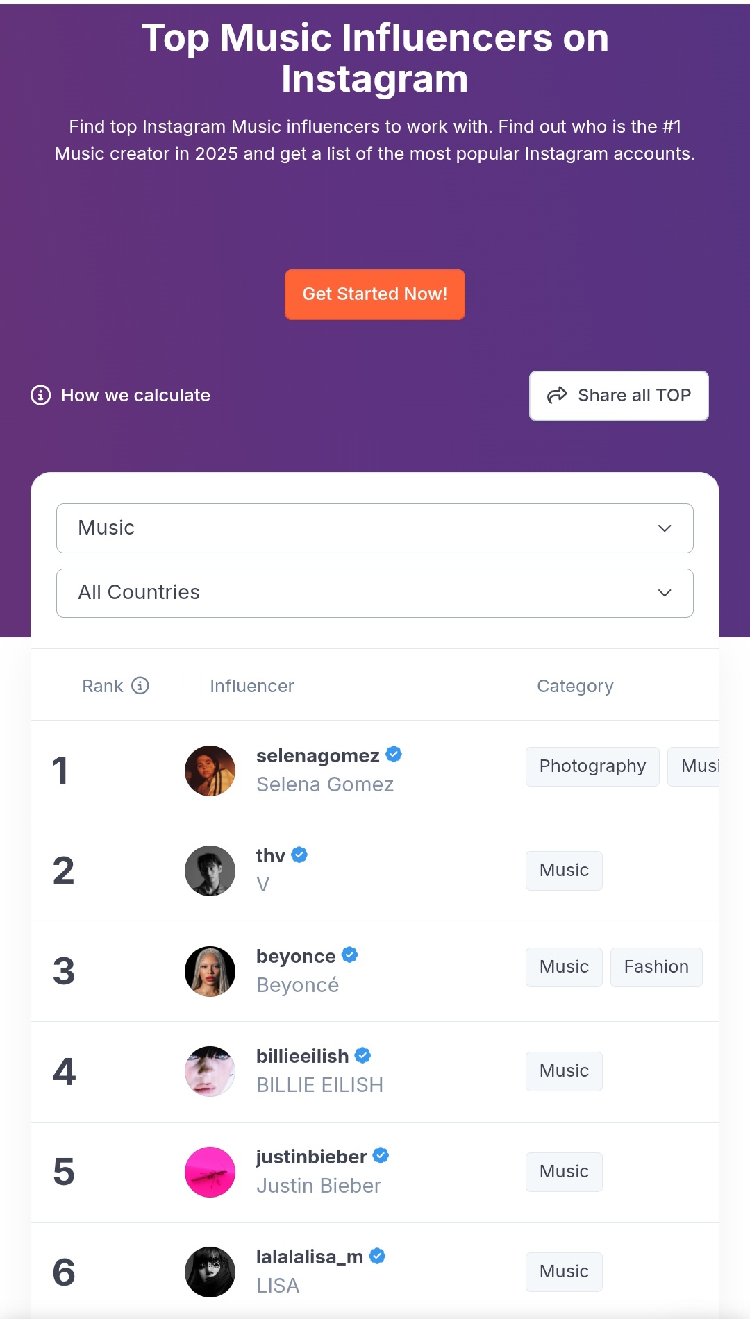 Lisa อยู่อันดับที่ 6 ของโลก ผู้มีอิทธิพลทางดนตรีชั้นนำบน Instagram