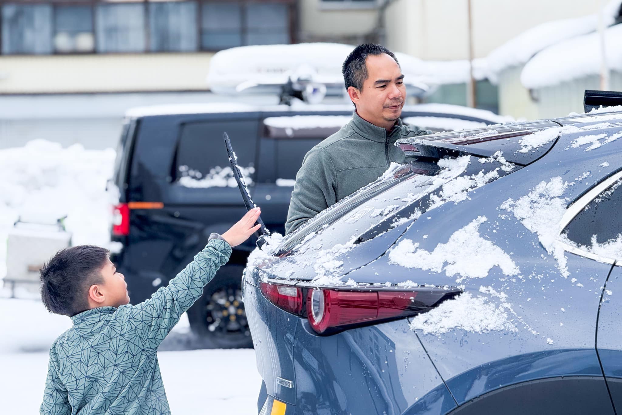 หลังจากจอดรถไว้ข้ามคืน เช้ามาให้เคลียหิมะบนหลังคา รอบๆรถ กระจก และใต้ซุ้มล้อรถด้วย เพราะบางครั้ง หิมะอาจติดจนแข็งจะเกิดอันตรายตอนขับขี่ (เวลาจอดรถข้ามคืน อย่าลืมยกที่ปัดน้ำฝนขึ้นไว้ด้วยนะ)