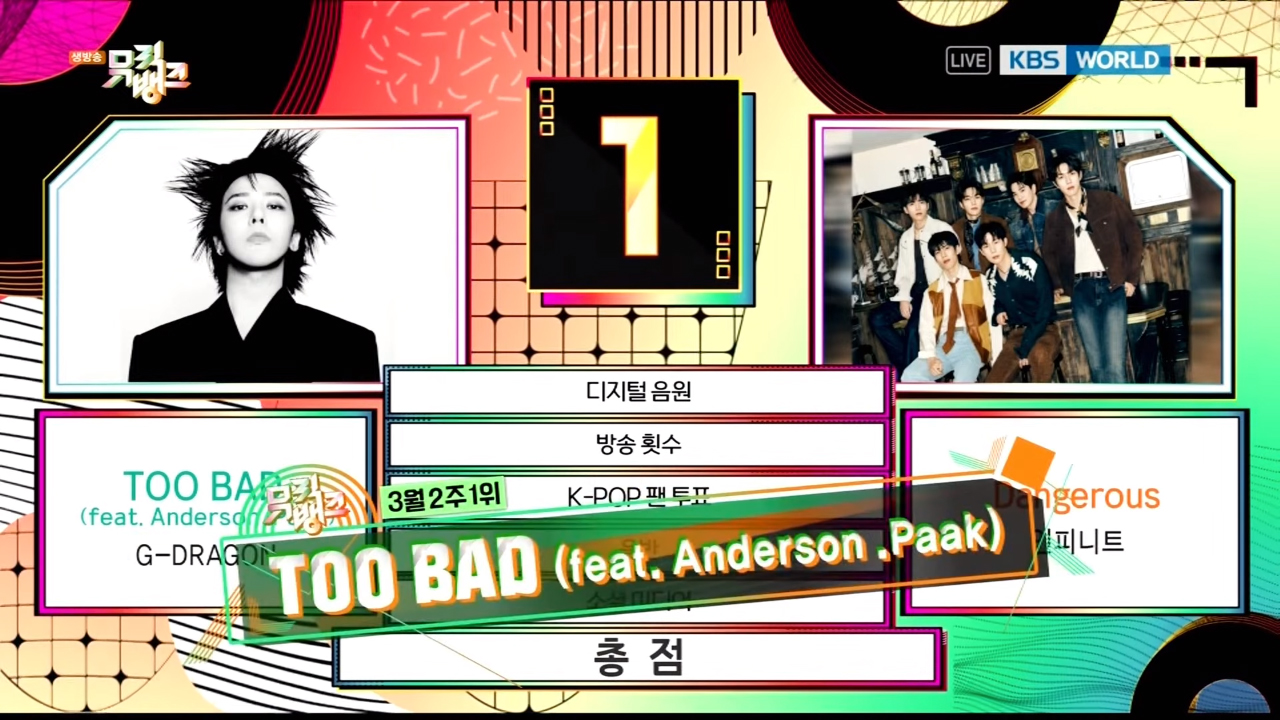 ขอแสดงความยินดีกับ G-DRAGON (지드래곤), #TOOBAD6thwin @ KBS Music Bank 🏆 [40th win]