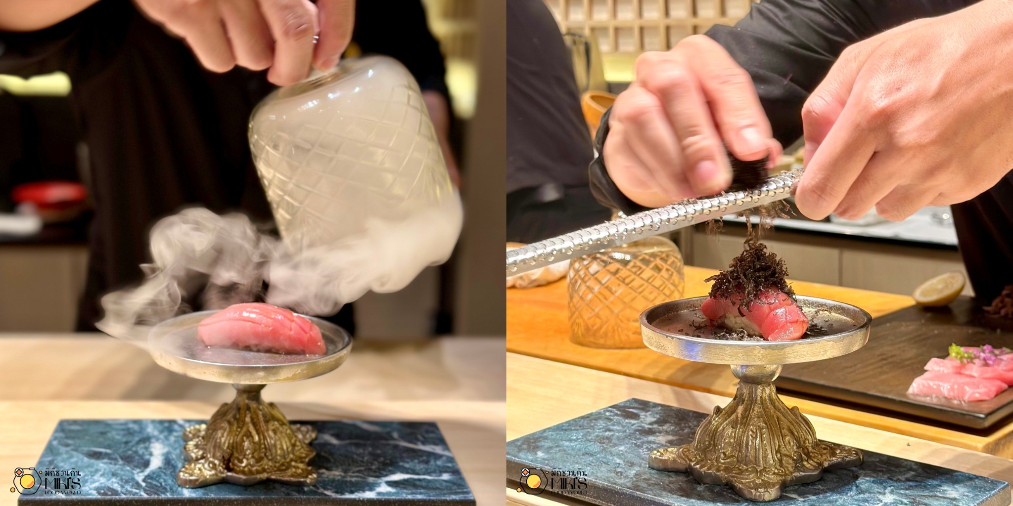 Smoked Chutoro Truffle เมนู signature ของร้าน ชูโทโร่เนื้อแดงสวย นำไปรมควันด้วยไม้ซากุระหอมๆ ท็อปด้วยทรัฟเฟิลสดจากฝรั่งเศส ทั้งสัมผัส ทั้งความหอมฟุ้ง ทุกอย่างเข้ากันได้ดีภายในปาก ไม่แปลกใจเลยว่าทำไมคำนี้ถึงเป็นคำเด่นของร้าน ต้องลองแล้วจะรู้