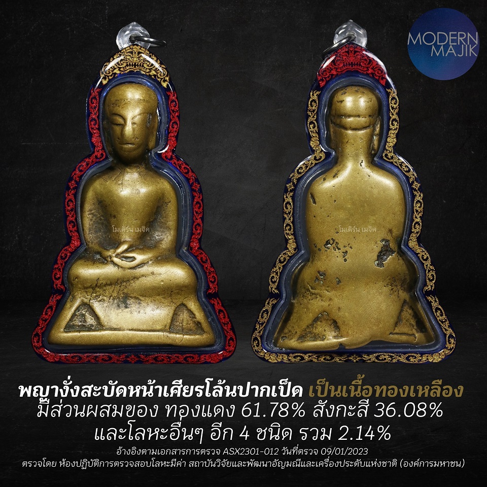 มีส่วนผสมของโลหะชนิดไหน ไม่ได้เป็นการตรวจหาอายุหรือความเก่าของพระงั่งครับ ดังนั้นข้อมูลในส่วนอายุของพระงั่งยังคงสรุปไม่ได้ และยังไม่มีข้อมูลใดอ้างอิงได้