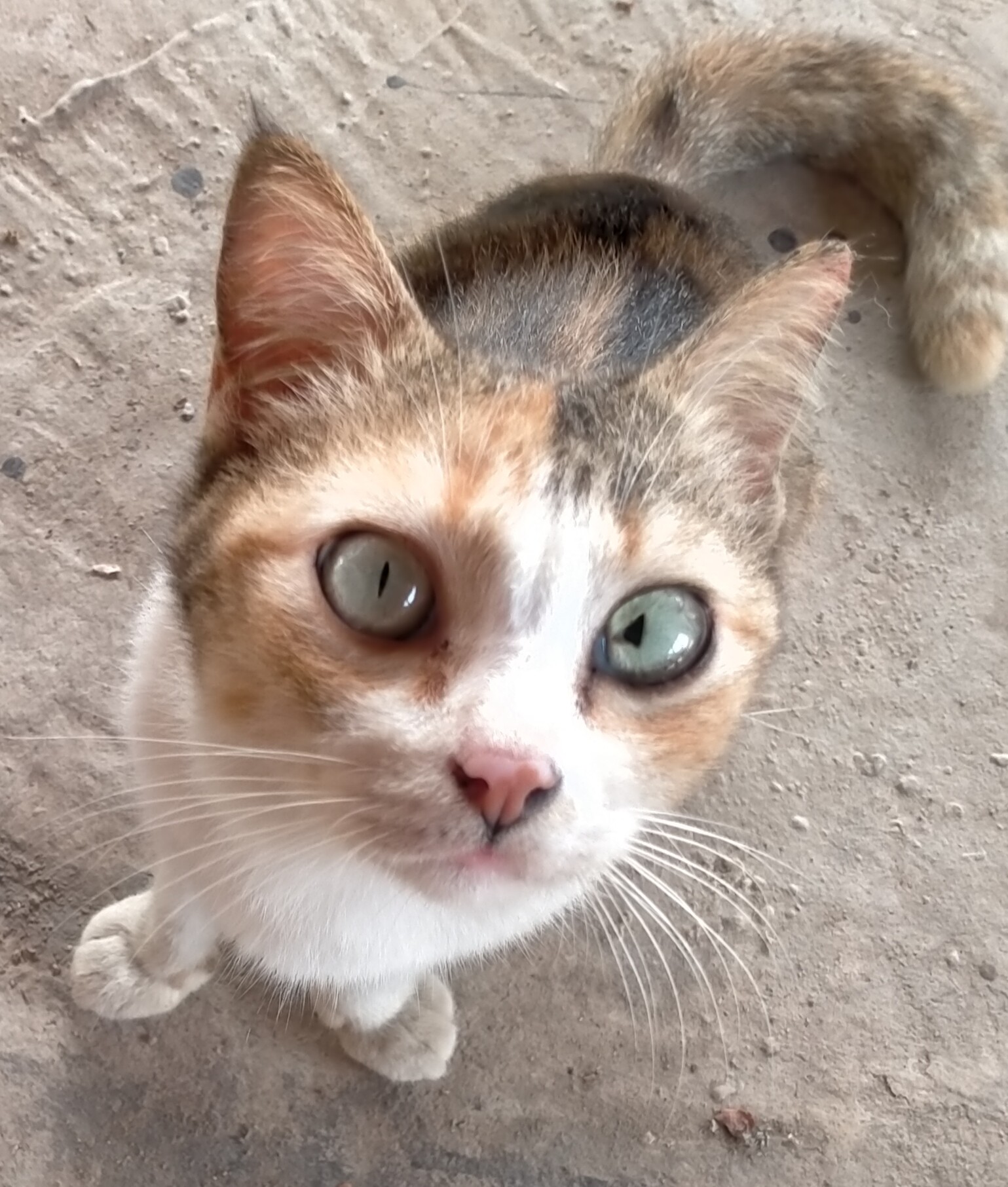เราเจอแมวจากโกดังยางฝั่งตรงข้ามบ้านกำลังเล่นอยู่ แล้วอีกขณะนึงก็เห็นงูอยู่แถวนั้น เรากลัวว่าน้องจะโดนงูกิน เลยล่อน้องออกมา สภาพน่าสงสาร ขนเอย หูเอย ตาเอย ดำไปหมด เพราะในนั้นมีแต่ยาง แล้วมีแต่ขยะ