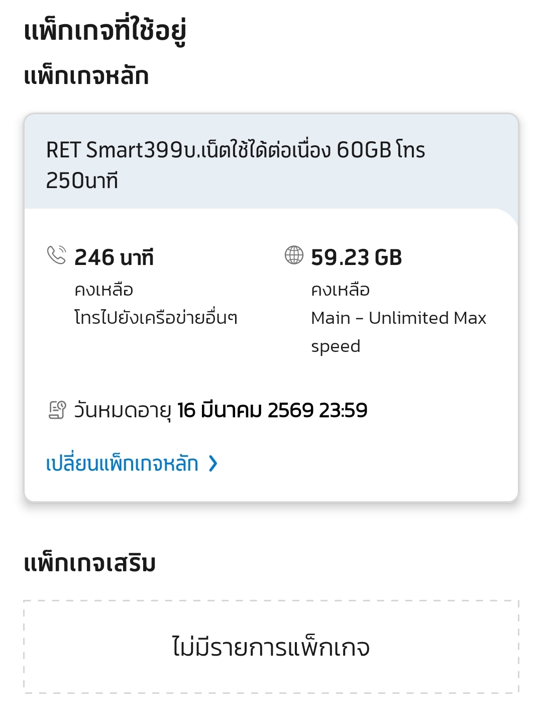 หลังจากนั้นก็สงสัยว่าในเมื่อเรายังจำเป็นต้องใช้ซิมDtacสักพักทางค่ายจะยังต้องเก็บค่าบริการแพ็กเกจหลักตามปีที่หมดอายุของแพ็กเกจเลยหรือเปล่า?