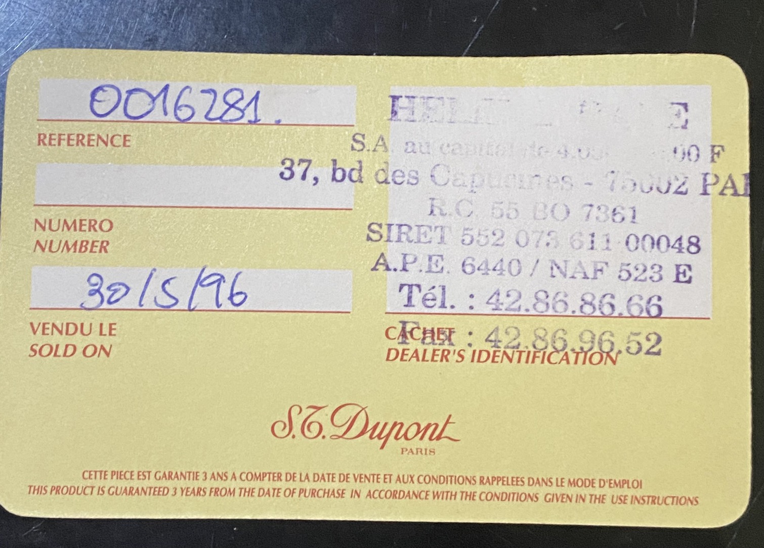 ได้รับไฟแช็ค S.T. Dupont จากคุณพ่อมา แล้วอยากหาคนรับไปดูแลต่อครับ เลยอยากสอบถามว่าเป็นของแท้หรือไม่ และ ราคารับซื้ออยู่ที่เท่าไร (หากสนใจ ทักมาหลังไมค์ได้เลยครับ) รายละเอียดตามภาพด้านล่างครับผม (Seria