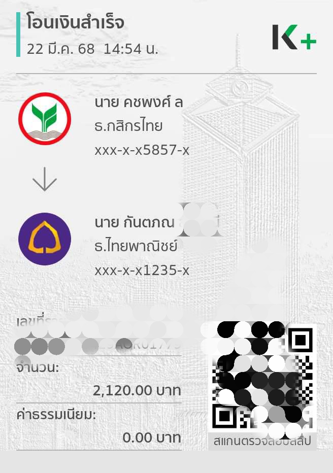 โอนเงินผิดบัญชี เพราะกดโอนพร้อมเพย์ผิด ยอด 50,000 บาท