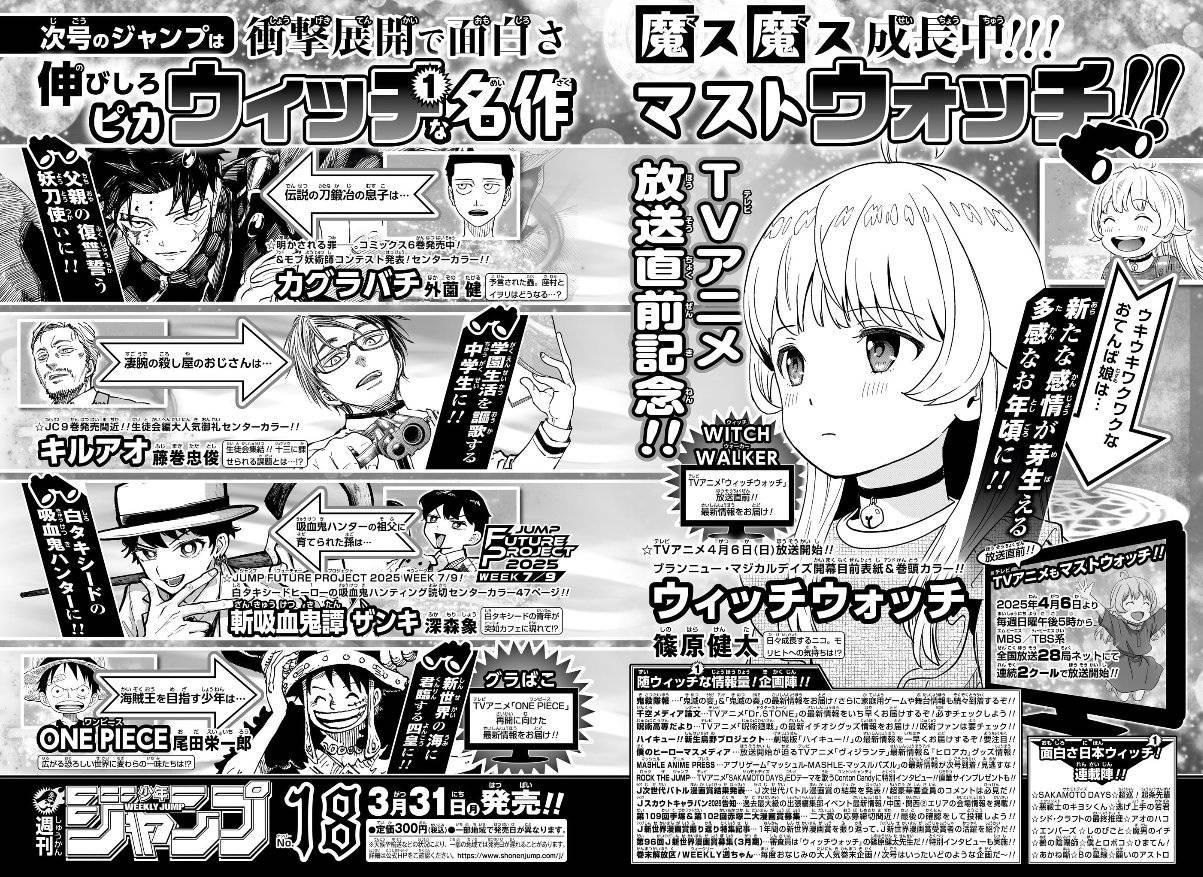 - จัมป์ฉบับนี้จะอัพลงM+ในวันที่ 23 มีนาคม เวลา 22.00 น. https://mangaplus.shueisha.co.jp/updates