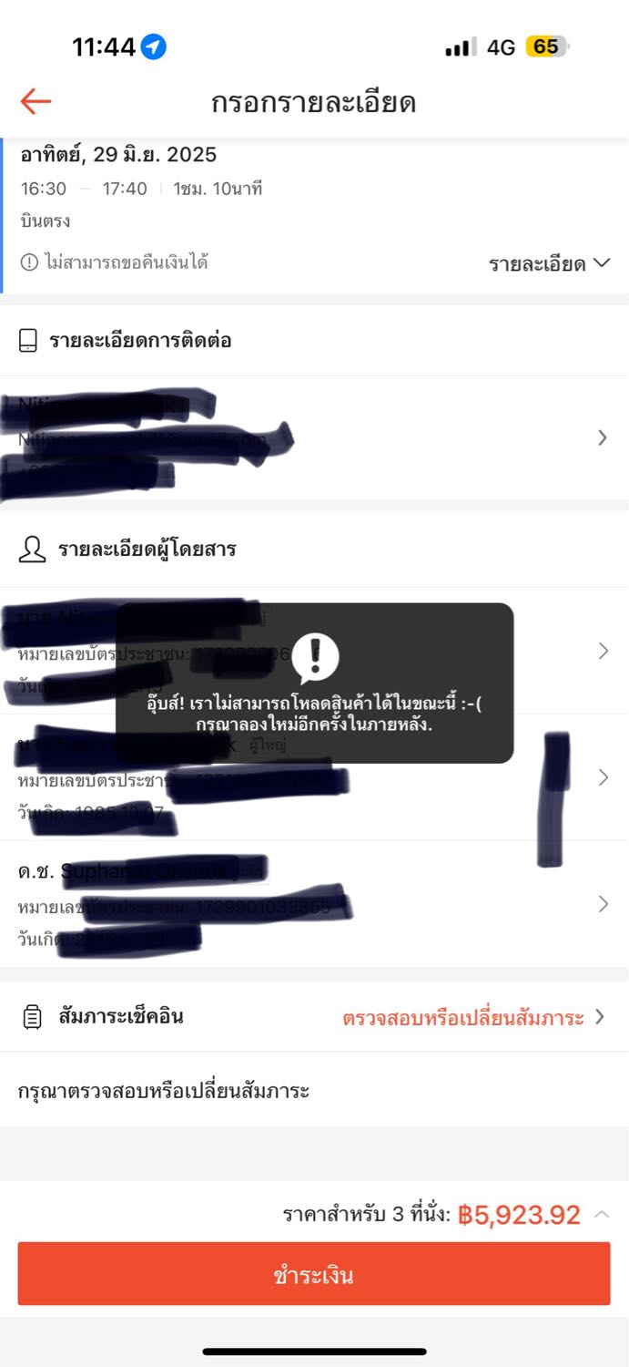 ผมได้จองตั๋วเครื่องบินผ่านแอพ Shopee พอจะจ่ายเงินแอพขึ้นว่า เราไม่สามารถโหลดสินค้าได้ในขณะนี้ แบบนี้เกิดจากอะไรครับ