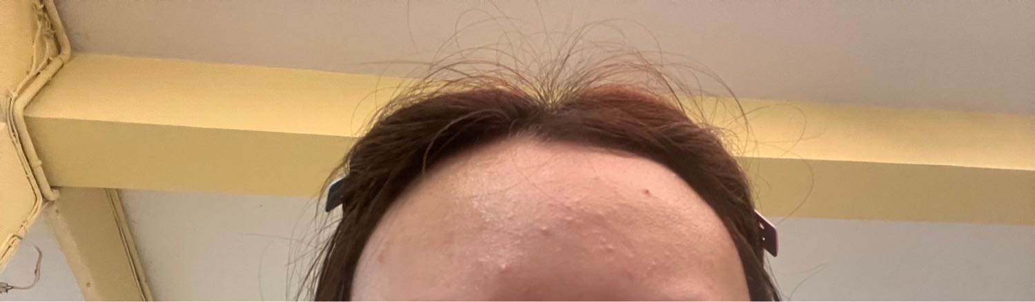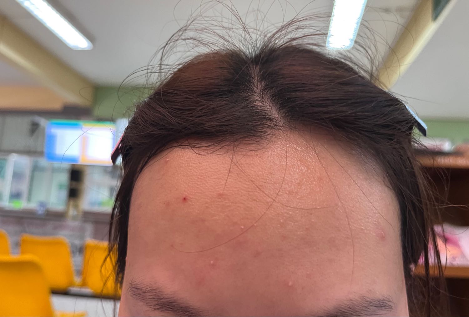 อย่างที่บอกค่ะ อยู่ดีๆก็เป็นสิวที่เป็นตุ่มหนองเล็กๆ เต็มไปหมด มีคนบอกว่าน่าจะแพ้น้ำ เพราะก่อนที่มันจะขึ้น จขกท.ขับมอไซต์ไปทำงาน แล้วฝนตก จชกท.ใส่เสื้อกันฝนค่ะ แต่วันนั้นไม่ได้สระผม ก็เลยมัดผมทำให้ห