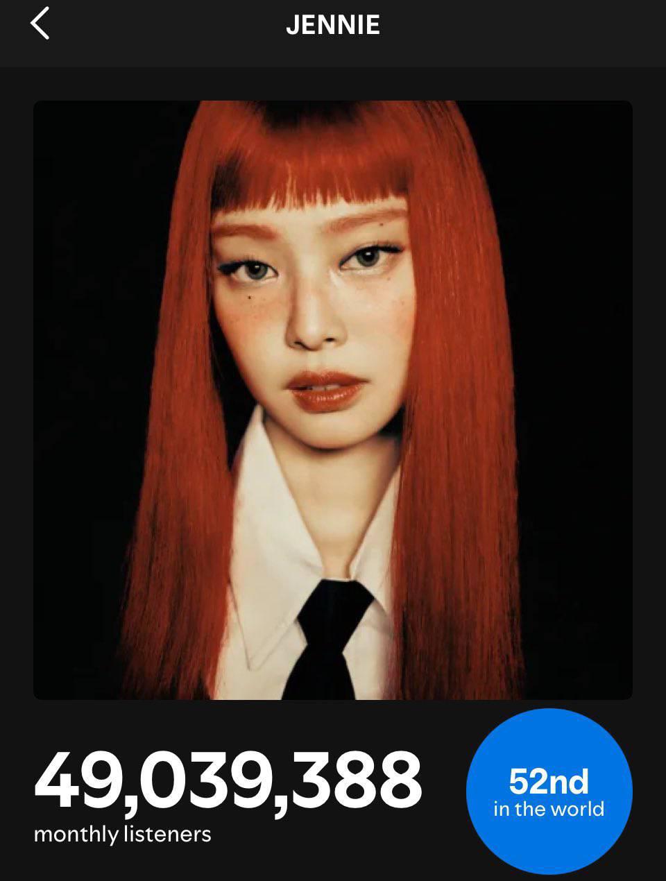 JENNIE มียอดผู้ฟังบน Spotify ทะลุ 49 ล้านคนต่อเดือน 🥳