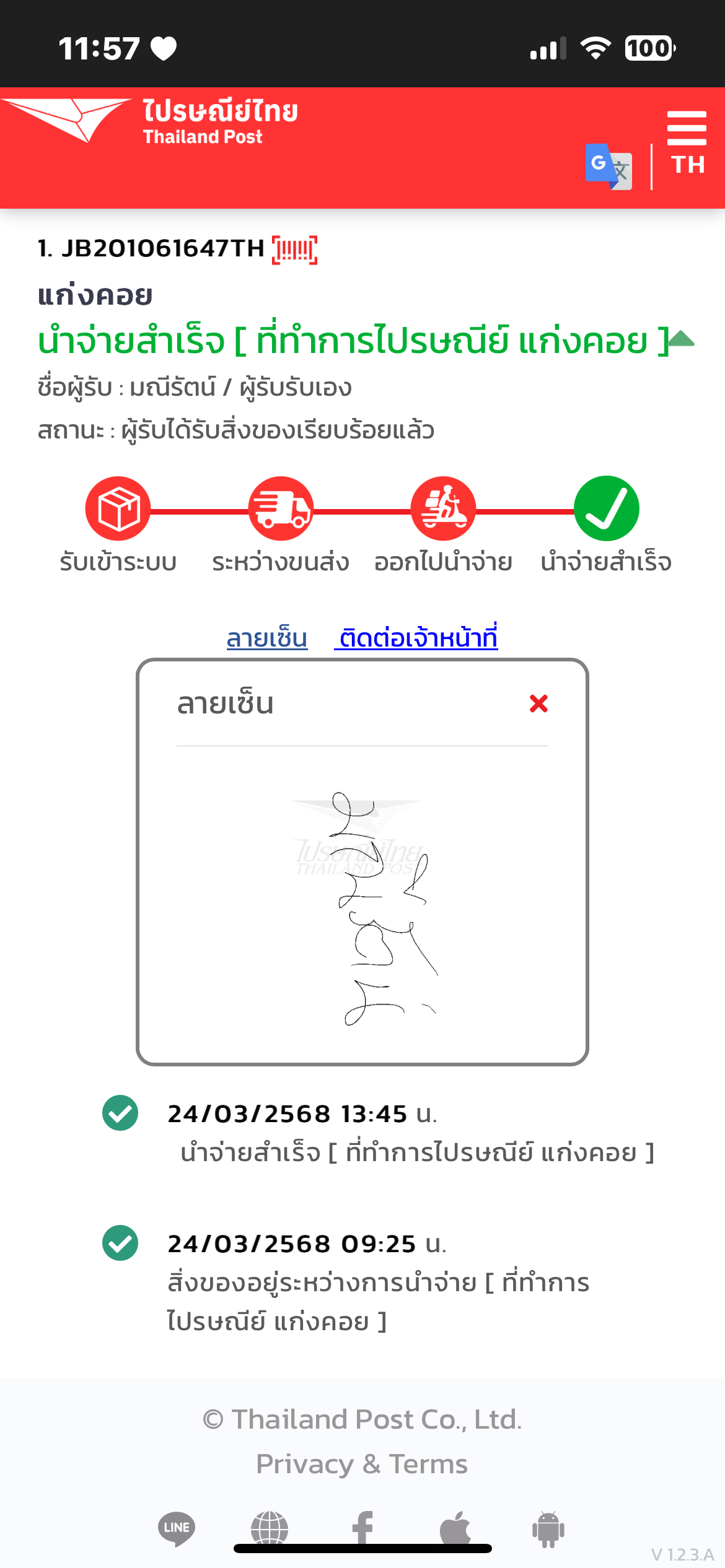 สอบถามไปรษณีย์ไทยเรื่องสถานะพัสดุไม่อัพเดท