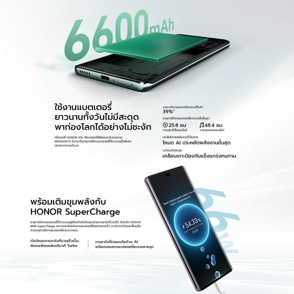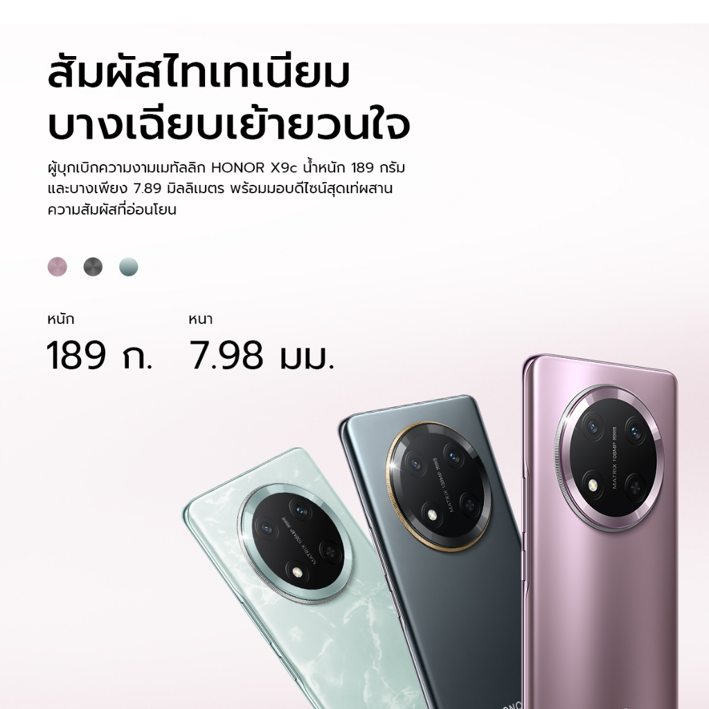 HONOR X9c 5G หน้าจอ AMOLED 120Hz กล้อง 108MP ชิป Snapdragon 6 Gen 1 แบตอึด ชาร์จเร็ว HONOR X9c 5G หน้าจอ AMOLED 6.78 นิ้ว 120Hz สีสวย คมชัด กล้องหลัง 108MP ถ่ายภาพสวย คมชัดทุกสถานการณ์ ชิป Snapdragon 6 Gen 1 แรง เร็ว ลื่นไหล แบตเตอรี่อึด ใช้งานได้นาน ชาร์จเร็ว ดีไซน์สวย บางเบา พกพาสะดวก