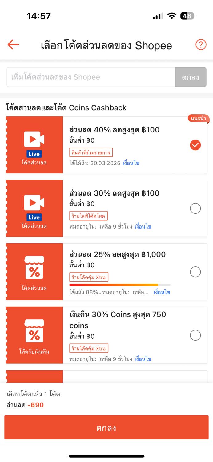 คือเมื่อเช้าเก็บโต๊ด 50% ได้ค่ะ แต่พอช่วงเที่ยงจะกดสั่งซื้อสินค้า ไม่เห็นมีแถบโค๊ด 50% 40% ที่แจกทุกวันให้เลือกใข้เลย ลองกดมา 3 รอบก็ไม่ขึ้น (12.57 13.57 14.57) ลองเปลี่ยนร้านกดมา 2 3 ร้านก็ไม่ขี้นแบบนี้คือโดนบล็อกโค๊ด?ค่ัะแล้วจะแก้?ค่ะ รบกวนผู้รู้ช่วยแนะนำหน่ิยค่ะ 🙏 หรือเขาเปลี่ยนกติกาไม่ให้กดทุกนาที 57 แล้ว