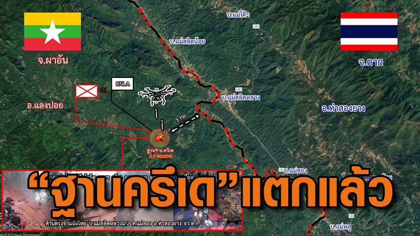 ต้านไม่ไหว “ฐานครึเด” แตกแล้ว กองกำลังกะเหรี่ยง KNLA เข้ายึดเบ็ดเสร็จ ทหารเมียนมาหนีตาย ทหารไทยตรึงกำลังเข้ม ป้องกันการรุกล้ำอธิปไตย