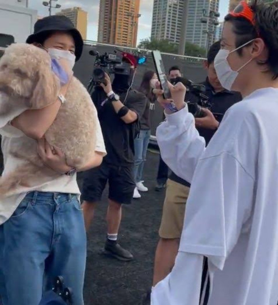 ในรูปจีมินตามมาเล่นกับสโตนนี่ในคอนของชูก้าที่อเมริกา