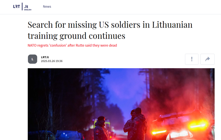 ทหารอเมริกัน NATO ซ้อมรบที่ลิทัวเนีย หายไป 4 นาย