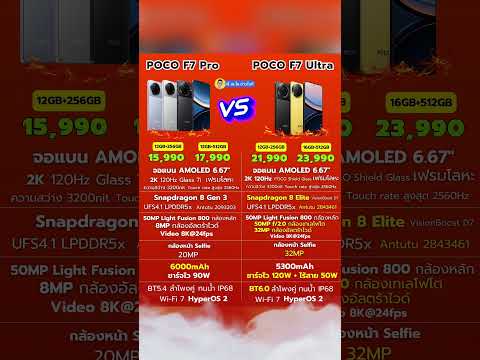 - ราคาถ้าเทียบกันตัวเริ่มต้น 12GB+256GB จะห่างกันประมาณ 5,000 นิดๆ ส่วนตัวมองว่า ถ้าเน้นเกมส์และถ่ายรูปนิดหน่อย POCO F7 Pro คุ้มกับเงินที่งบน้อย แต่ถ้าใครอยากได้ชิปใหม่ล่าสุดจัด POCO F7 Ultra ได้เลยครับ