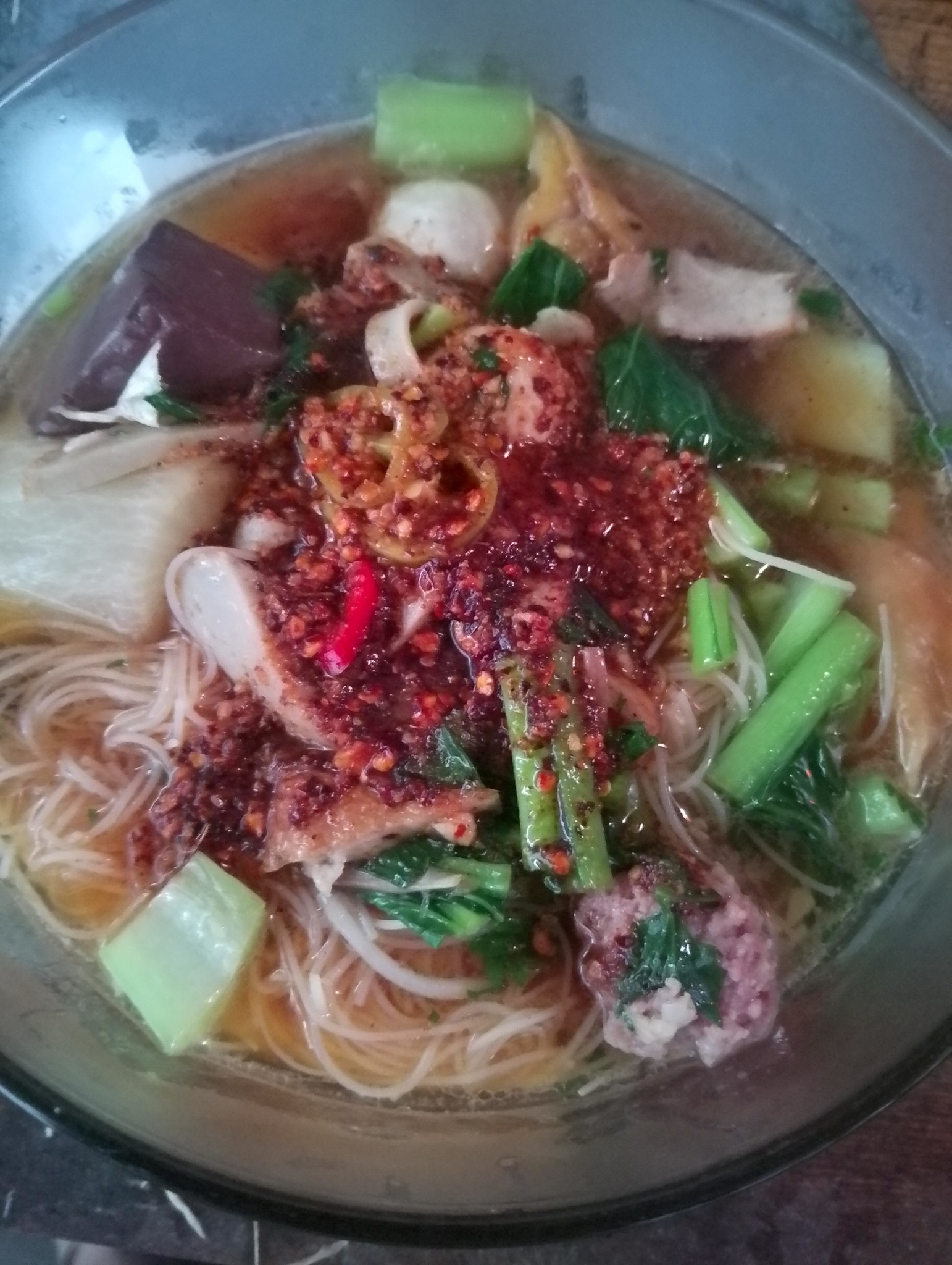 มื้อเที่ยงวันนี้ เมนูก๋วยเตี๋ยวป๊อกๆ(เพื่อนๆเรียกก๋วยเตี๋ยวอะไรกันนะ) เส้นหมี่ขาว อร่อยมากจ้า