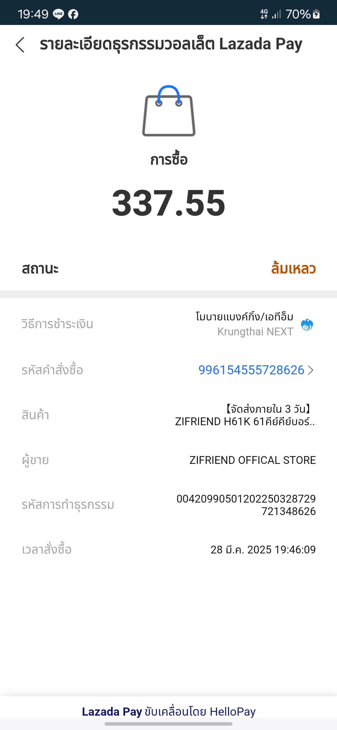 คําสั่งซื้อปิดแล้วในลาซาด้าคืออะไรช่วยอธิบายทีครับ?