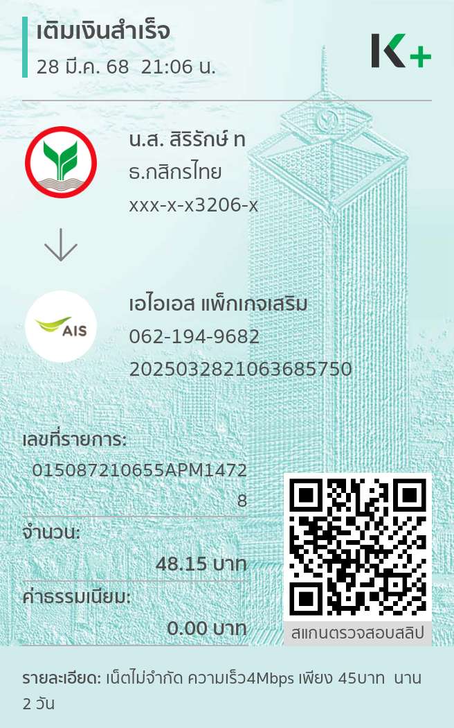สมัครเน็ต Ais รายวัน แต่ใช้งานไม่ได้หักเงินแล้ว 0810862573