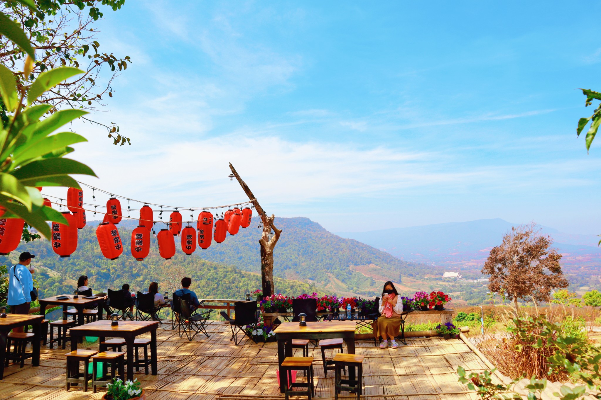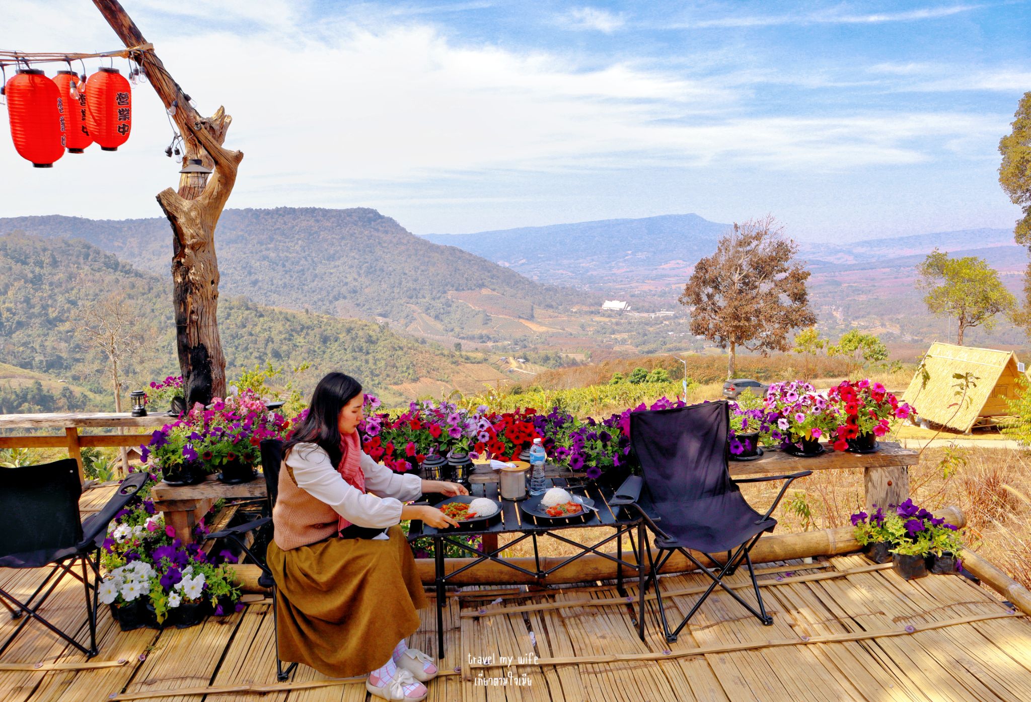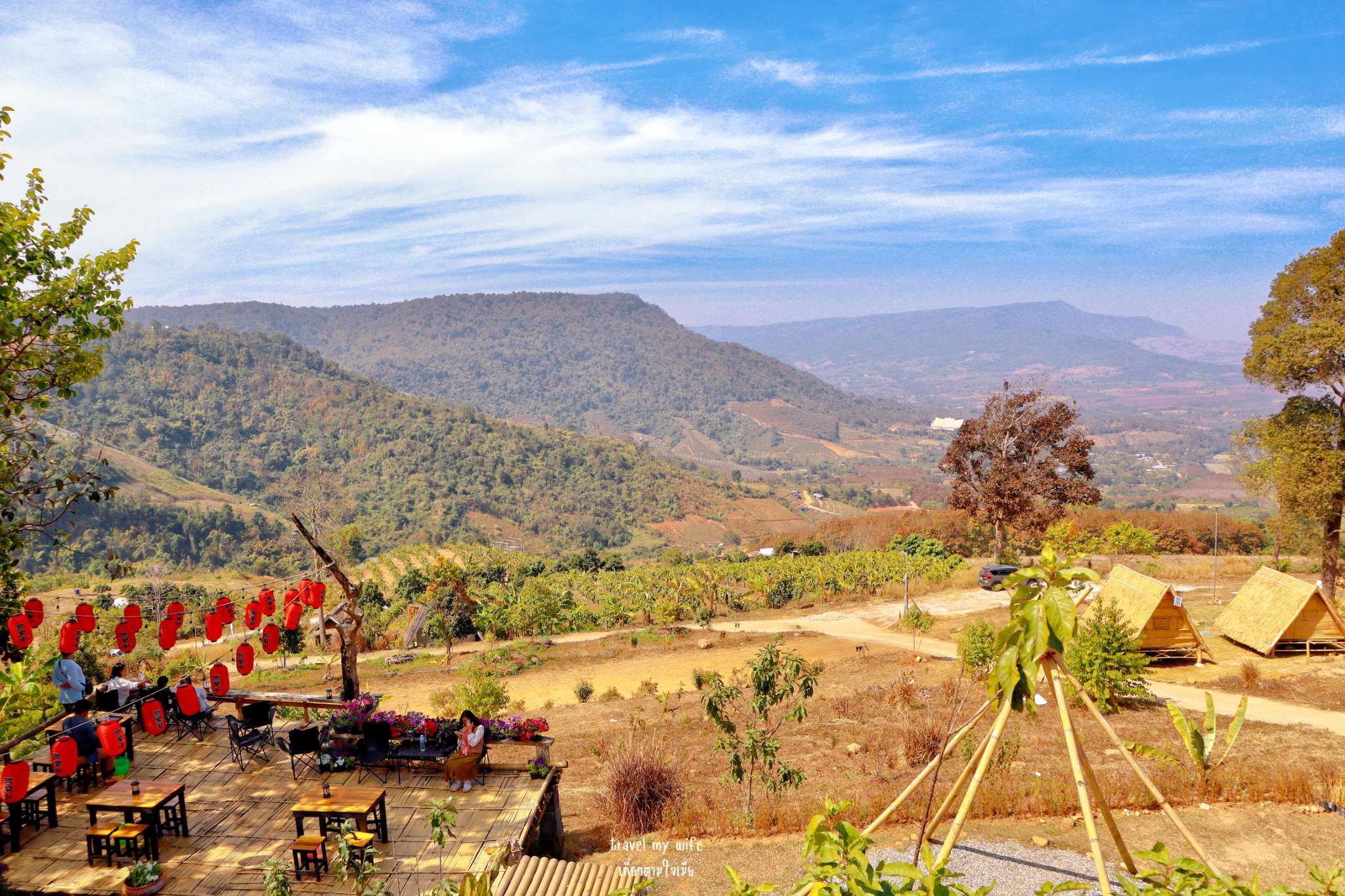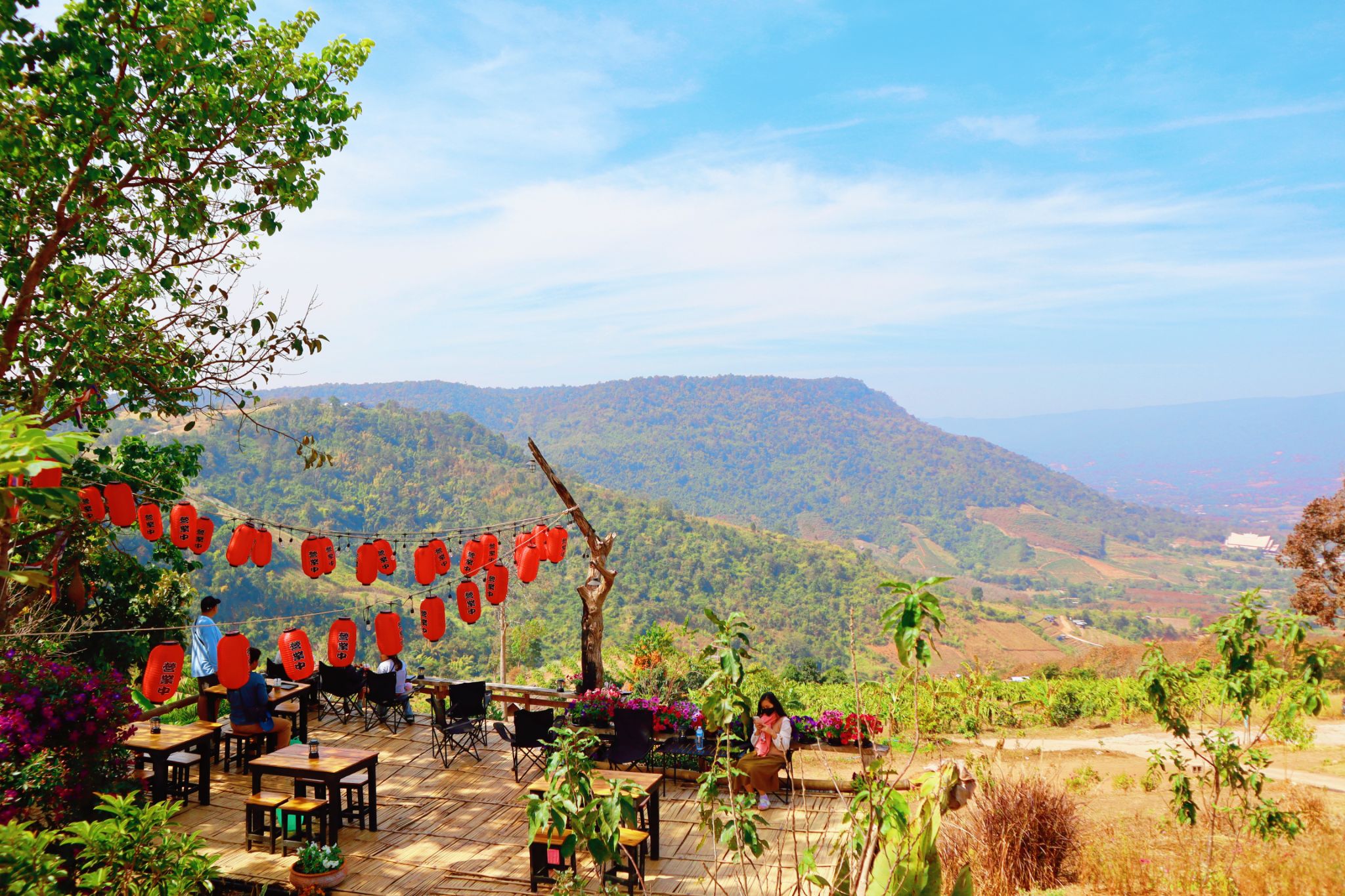 ใครมาเที่ยวอำเภอภูเรือ อยากได้คาเฟ่ที่บรรยากาศดี ไม่เหมือนใคร วิวสวยๆ จากมุมสูง มองลงไปด้านล่างเห็นวัดป่าห้วยลาด วิวสวยสุดสายตา
