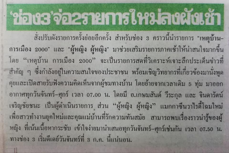"ช่อง 3" เปิดตัว 2 รายการใหม่ลงผังช่วงเช้า