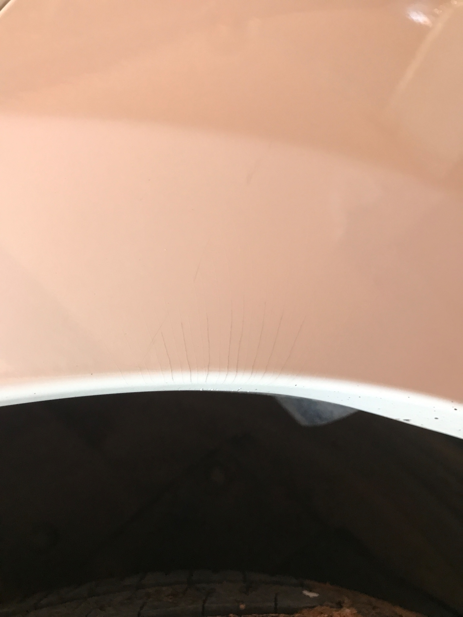 เราจะเอารถไปต่อ พรบ ภาษี ที่ตรอ.แห่งหนึ่ง เราและแม่ล้างรถช่วยกันก่อนไปตอนเช้า เราทราบกันดีว่าบริเวณล้อรถด้านหน้าไม่มีรอย ตอนไปตรวจ10 โมงกว่า พอเราตรวจสภาพรถเสร็จกลับมาถึงบ้าน เห็นรอยสีถลอก และมีรอยร้าวทั้ง2 ด้าน บริเวณเดียวกันเป๊ะทั้ง2ฝั่ง ขอสอบถามหน่อยค่ะว่ามันเกิดจากสาเหตุอะไรได้บ้างคะ ขอบคุณล่วงหน้าค่ะ