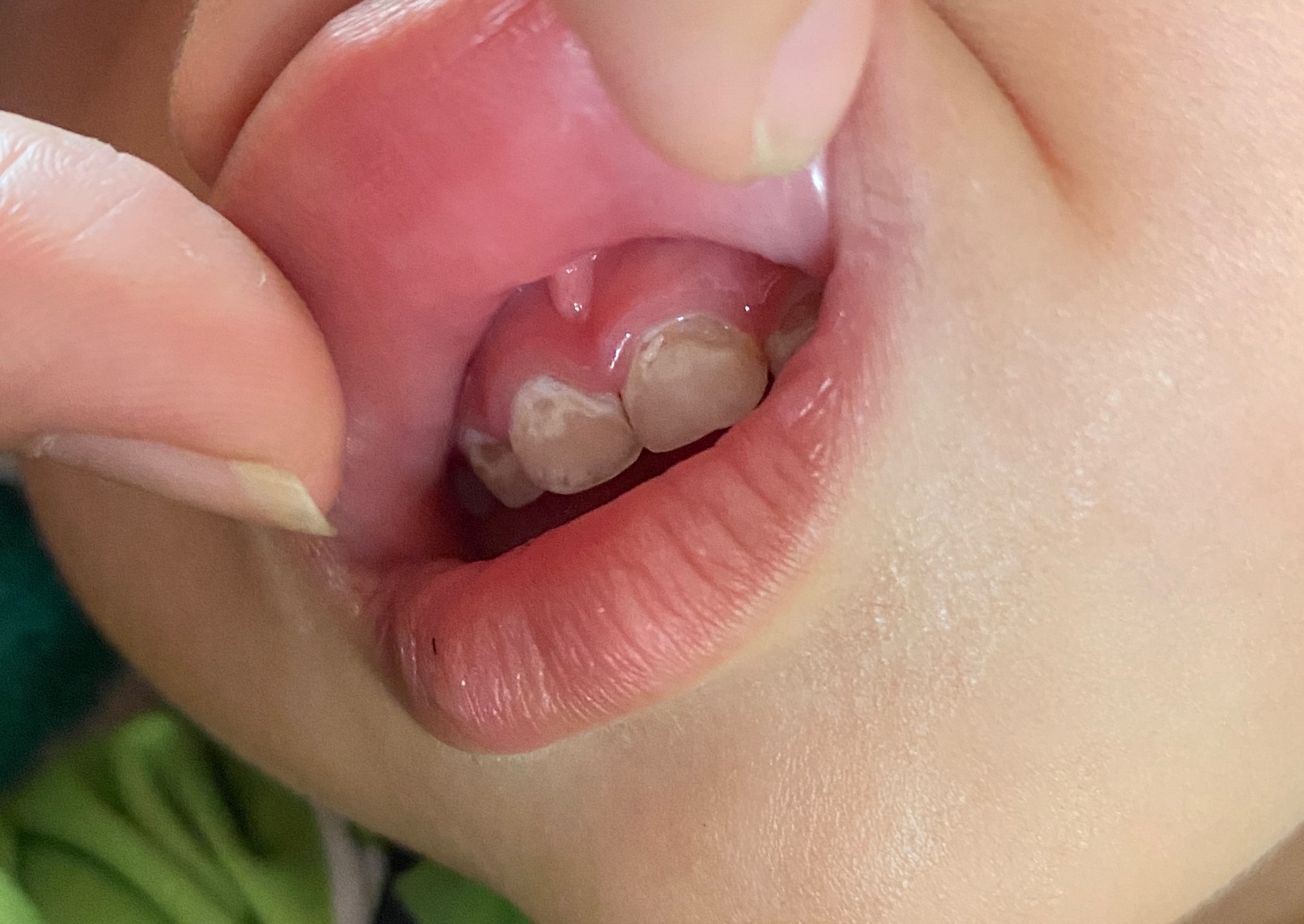 สังเกตเห็นคราบขาวๆที่ฟันลูกตอนแปรงฟังค่ะ แต่ก็คิดว่าคงเป้นแค่คราบนมธรรมดา เมื่อคืนลองขูดๆดู ปรากฏว่าขูดไม่ออก แถมตอนลูกหลับเราลอง แหกปากดูใกล้ๆ เห็นรูเล็กๆแต่ไม่ลึก เท่าหัวเข็มอยู่ที่โคนฟันของลูก ตกใ