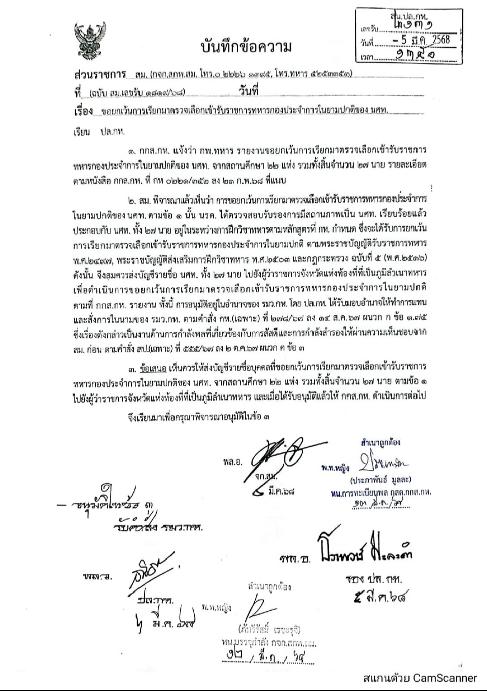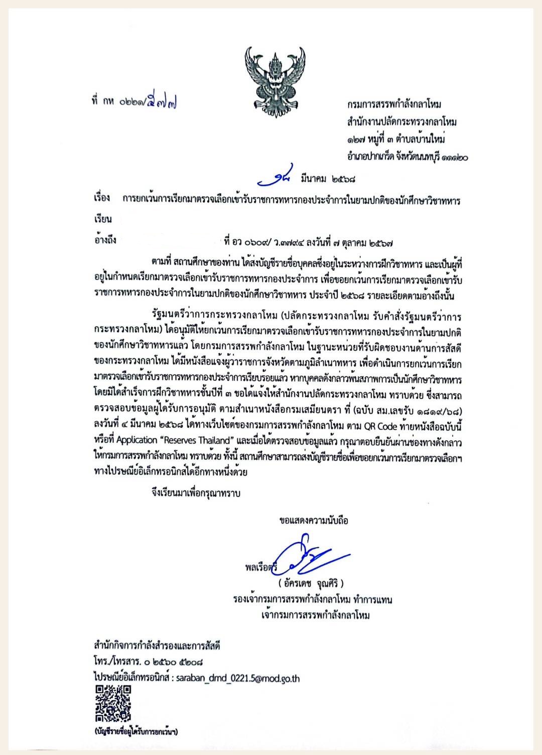 สวัสดีครับ พอดีผมเรียน รด.ช้า และวันที่ 3 เมษายน 2568 นี้ผมต้องได้เกณฑ์ทหารแล้ว