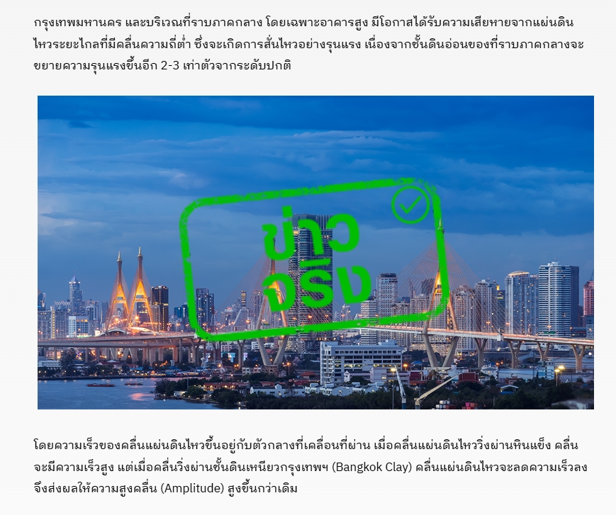 กรุงเทพฯ และปริมณฑล เป็นชั้นดินอ่อน เมื่อเกิดแผ่นดินไหว จึงมีแรงสั่นสะเทือนมาก