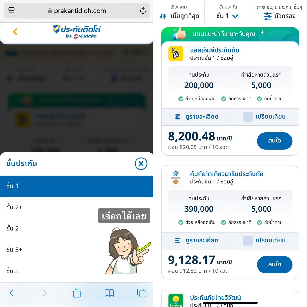 - คุ้มครองครบทุกรูปแบบ เคลมได้ทุกการชน ไม่มีค่าเสียหายส่วนแรก (เราเลือกเป็น ประกันรถชั้น 1 นะคะ)