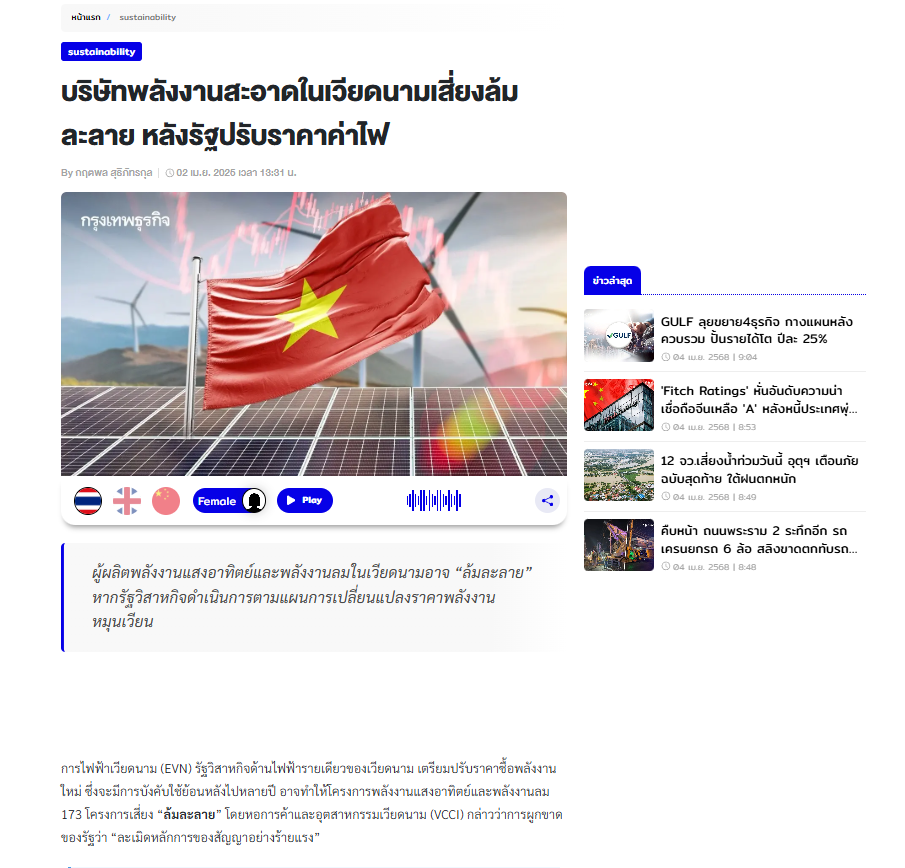 ข่าว เวียดนาม ปรับราคาค่าไฟลง ทำไมไทยทำไม่ได้ครับ