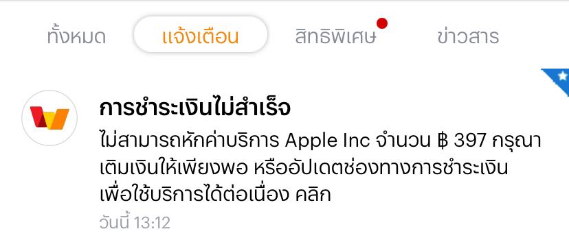 คือเราเรามาเลื่อนแจ้งเตือนในทรูมันนี่ค่ะ แล้วพบการเรียกเก็บเงินจากApple Inc จำนวน397บาท