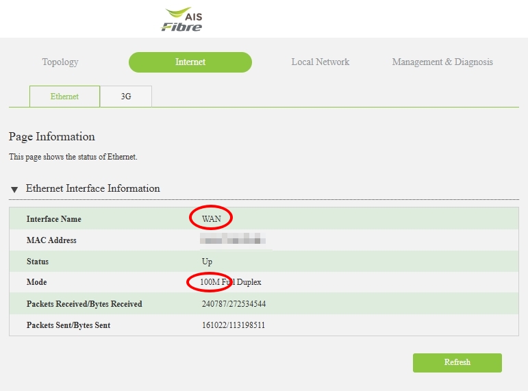 WAN ของ AIS Fibre ต่อได้ 100mbps