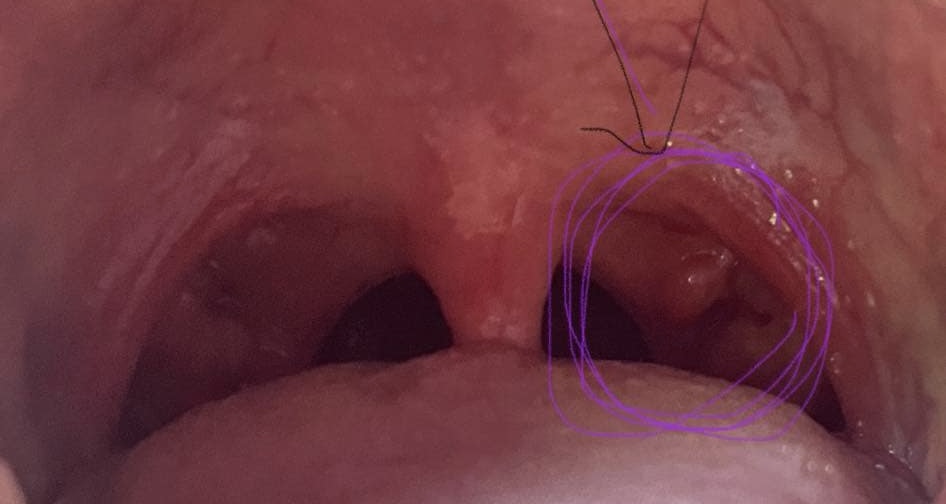 คือมันมีก้อนขาวๆอยู่ตรงลิ้นไก่อะครับ สีเขียวข้างบนคือผมวาดให้ดูเฉยๆว่า ทางซ้ายคือลิ้นไก่ทางขวาคือก้อนที่มันติดๆเป็นติ่งๆอะครับ แบบถ้าดึงก็หลุดอะไรประมาณนั้นอะครับ พอจะทราบไหมครับว่าเกิดจากอะไร อ