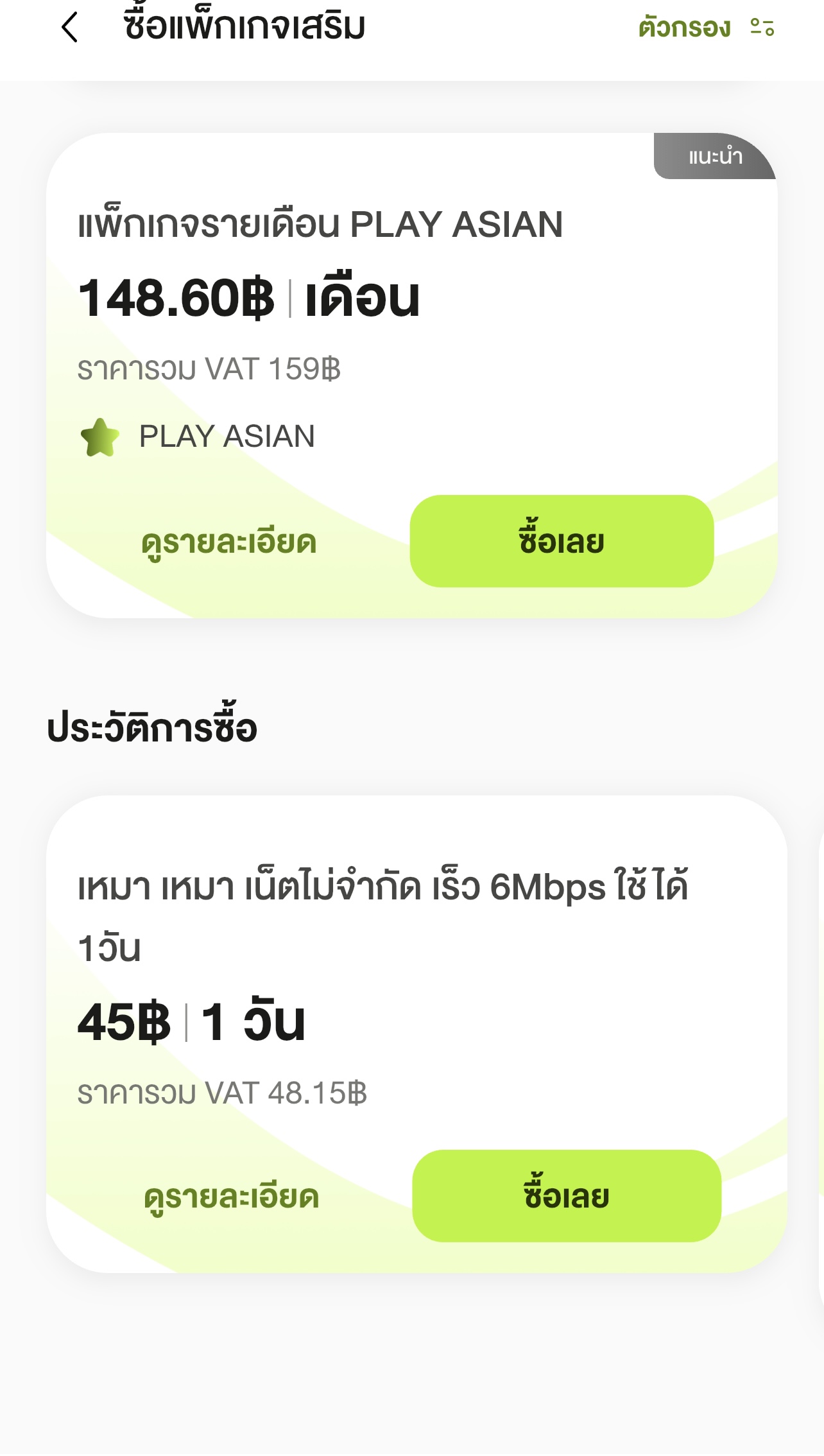 คือเราใช้แต่แพ็กเก็จเสริมนี้ส่วนใหญ่มันจะขึ้นมาให้กดพอเราใช้หมดบางทีมันก็ไม่ขึ้นให้กดแล้วต้องไปสมัครเป็นต่อวันเอง มันมีเงื่อนไขอะไรที่บางทีสมัครได้บางทีสมัคนไม่ได้บางทีเติมเงินมาจะกดไม่มีให้กด พอทิ้งเงินไว้เข้ามาดูอีกทีก็หายไม่รู้โดนหักไปกับค่าอะไรประวัติก็ไม่มี