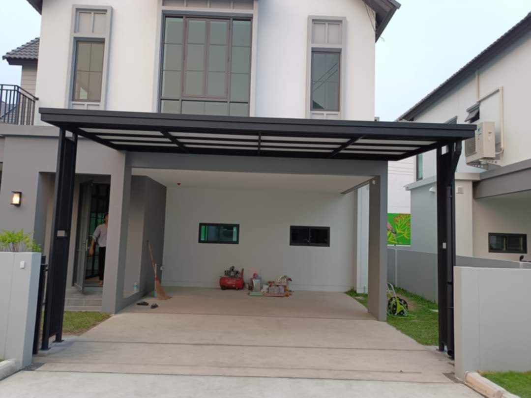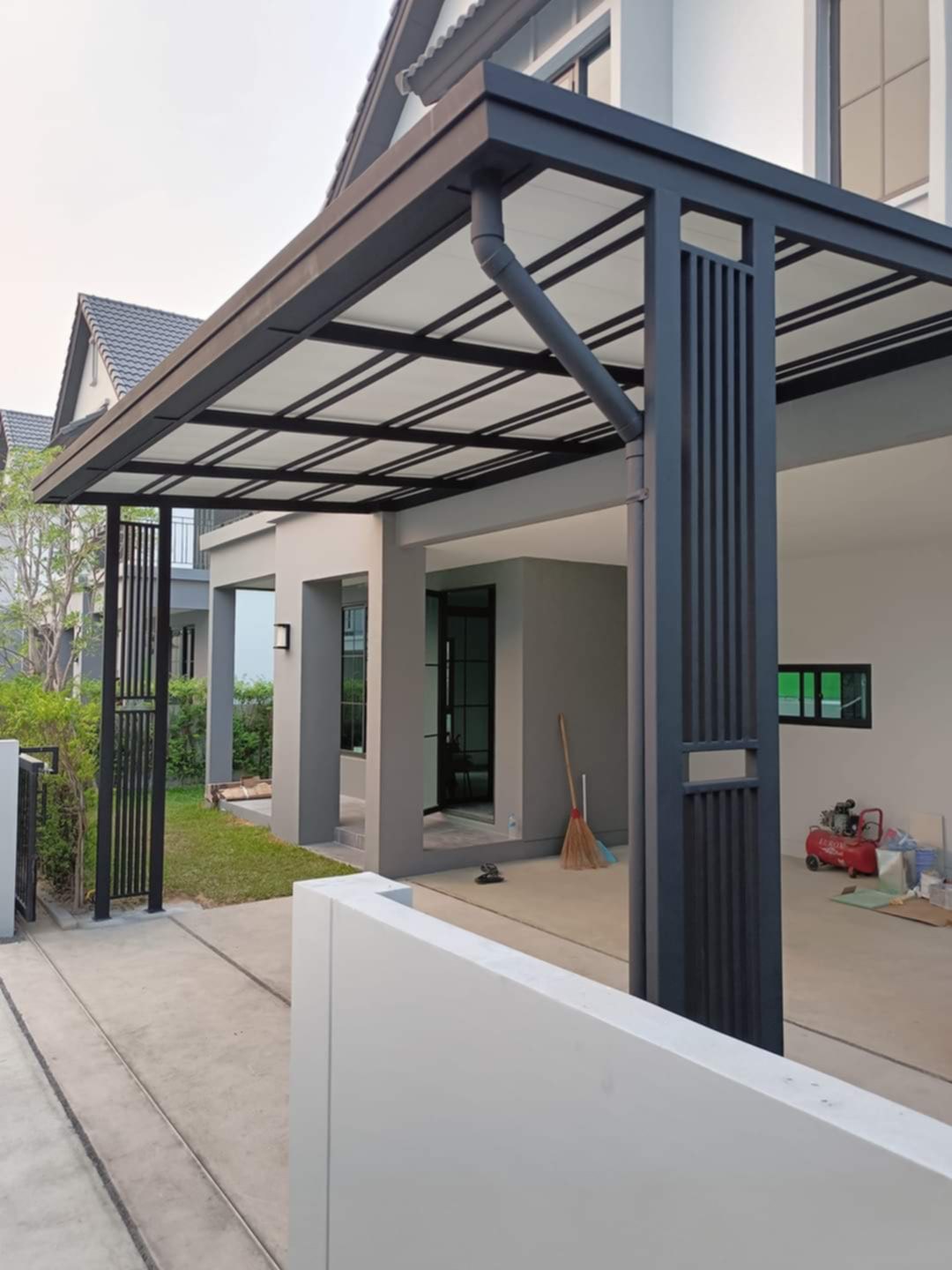 ติดตั้งวัสดุมุงหลังคา: เลือกวัสดุมุงหลังคาตามที่ต้องการ เช่น แผ่นเมทัลชีท กระเบื้องลอนคู่ หรือวัสดุอื่นๆ และทำการติดตั้งบนเหล็กแป