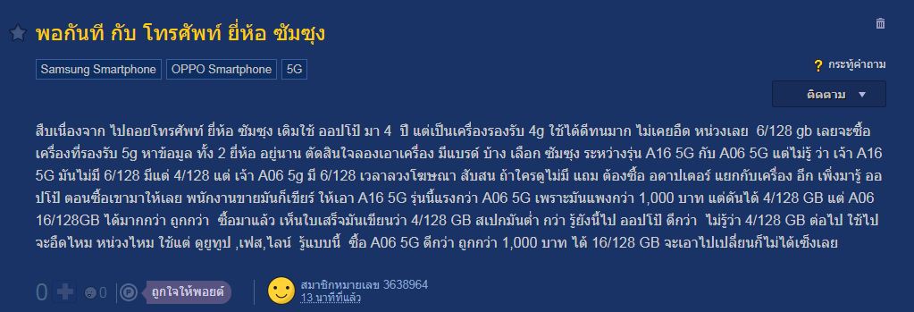 ถ้าต้องการเปรียบเทียบ ก็ต้องเป็นตัว A06 5G 4/64 กับ A16 5G 4/128 สิ่งที่ต่างกันคือความจุ ซึ่งเครื่องที่มีมากกว่าก็ย่อมแพงกกว่าเป็นปกติ