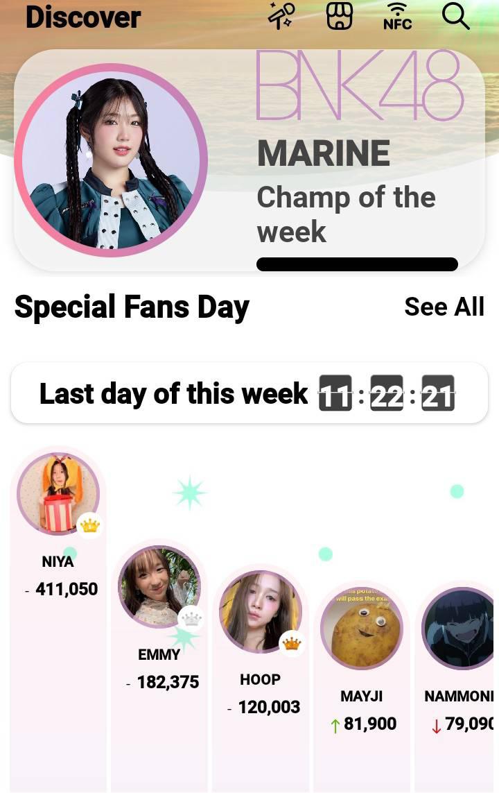 CHAMP. OF THE WEEK. Janry bnk48. และขึ้น แท่นตอนนี้ เด็กจิ๋วปลายฟ้า. CGM 2.4 แสน อันดับ2 Hoop ไม่ห่าง