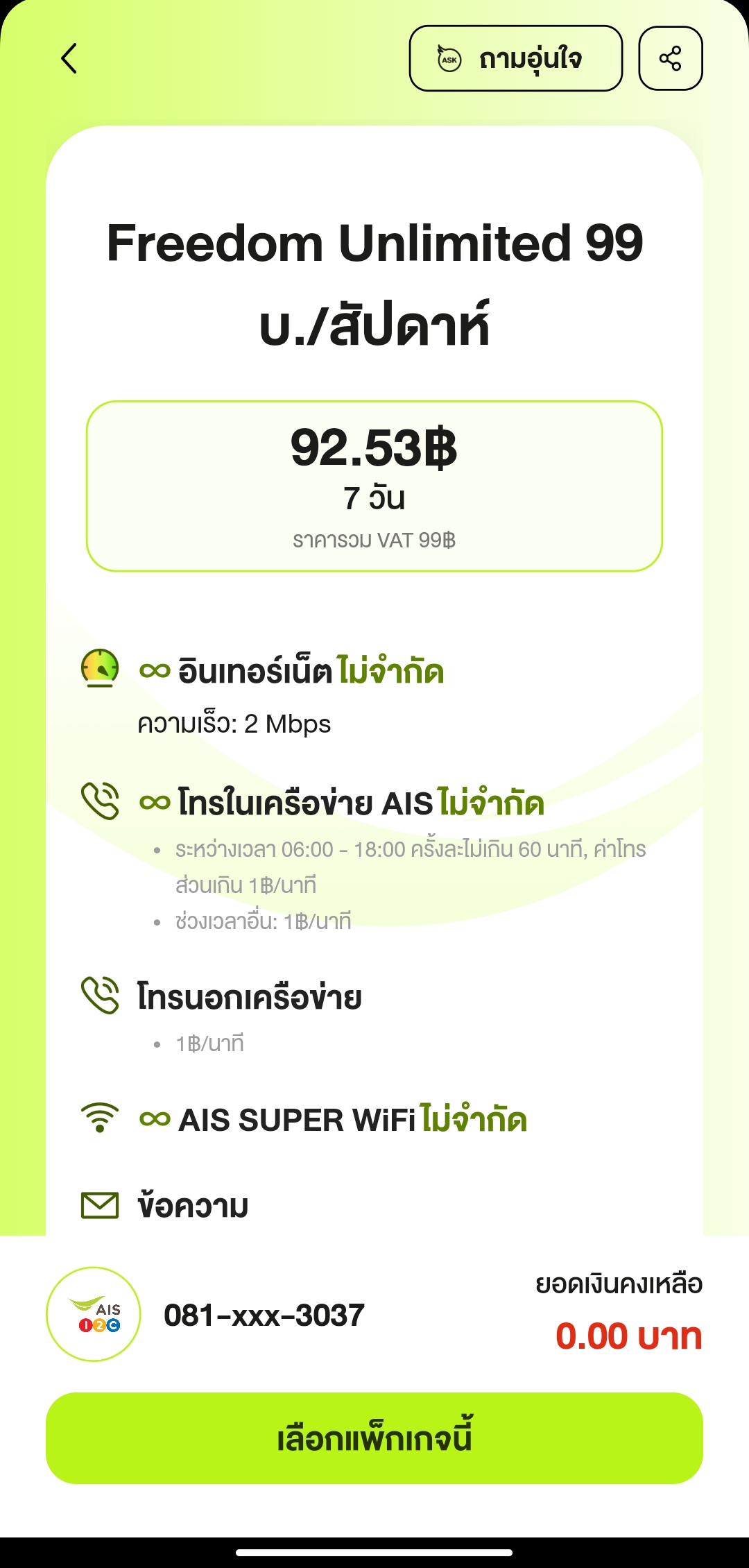 ทำไมอยู่ดีๆaisถึงเปลี่ยนเเพ็กเกจเองคะ จาก150 เป็น200 ทำไมถึงเปลี่ยนเอง เเบบนี้ไม่โอเคมาก เเนะนำโปรซิมทรูหน่อยค่ะ จะย้ายค่ายละ
