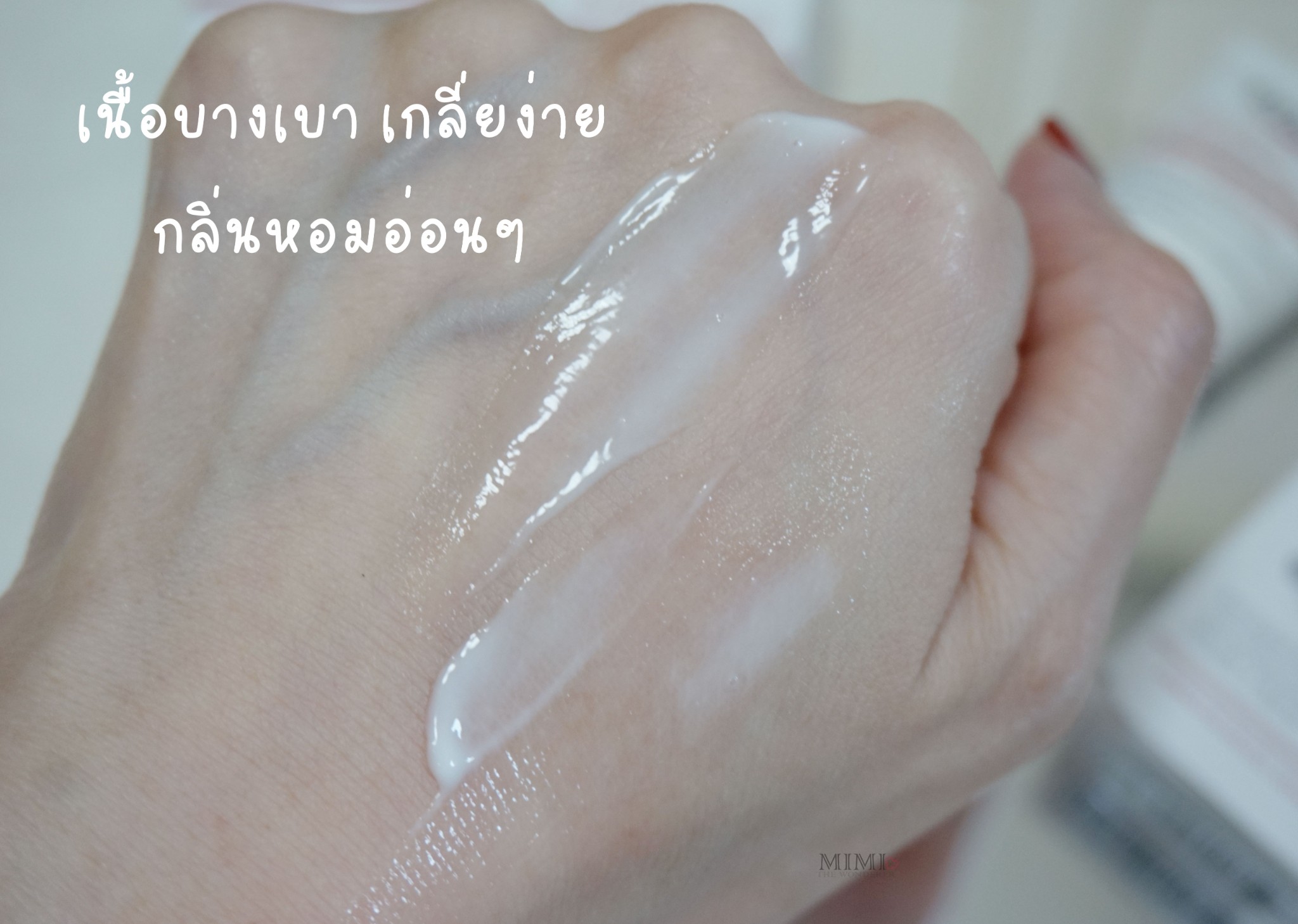 เนื้อโลชั่นสีขาว เนื้อบางเบา ซึมเข้าสู่ผิวได้ไว