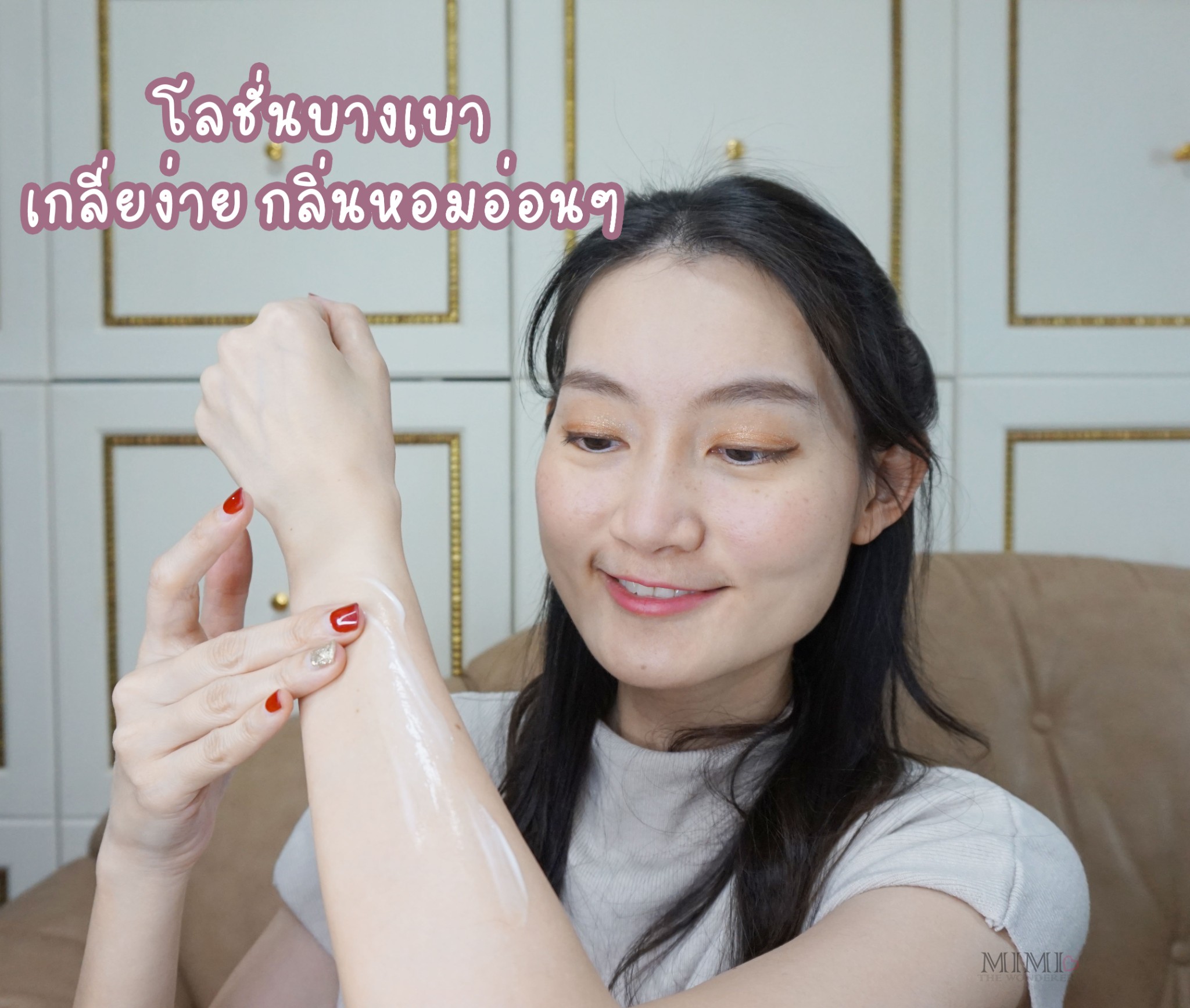 ตอนทาเราชอบกลิ่นโลชั่นตัวนี้มากเลย เพราะกลิ่นหอมอ่อนๆ เนื้อบางเบา เหมาะกับสภาพอากาศเมืองไทยมากๆ แถมยังซึมซับได้ไว ไม่เหนียวเหนอะหนะผิว เกลี่ยได้ง่าย และไม่รู้สึกเหนอะหนะผิวระหว่างวันเลย สบายผิวมากค่ะ
