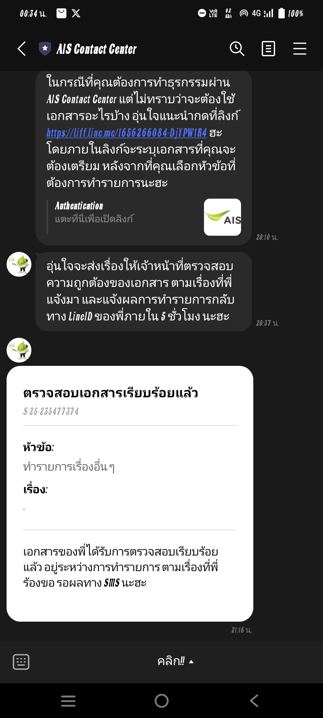 สวัสดีครับ เมื่อวันที่15เมษายนที่ผ่าน ผมได้ทำการชำระค่าบริการบิลรายเดือนของ ais ชำระเงินผ่านช่องทางธนาคาร ตัดเงินไปเรียบร้อย แต่ในแอพmyais ยังขึ้นว่าค้างชำระค่าบริการอยู่เลย ไม่ได้รับsmsว่าชำระค่าบริการแล้ว ได้ยื่นเรื่องผ่านทางline เวลา ช่วง20:30 มาวันนี้ยังไม่ได้รับsmsอะไรเลยครับ รบกวนทางais ช่วยตรวจสอบให้หน่อย