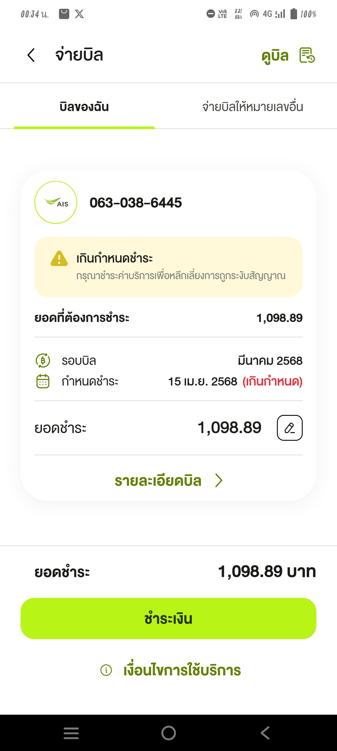 จ่ายบิลaisายเดิน ตัดเงินในธนาคารเรียบร้อย เเต่ขึ้นยอดค้างชำระบิลในmyais